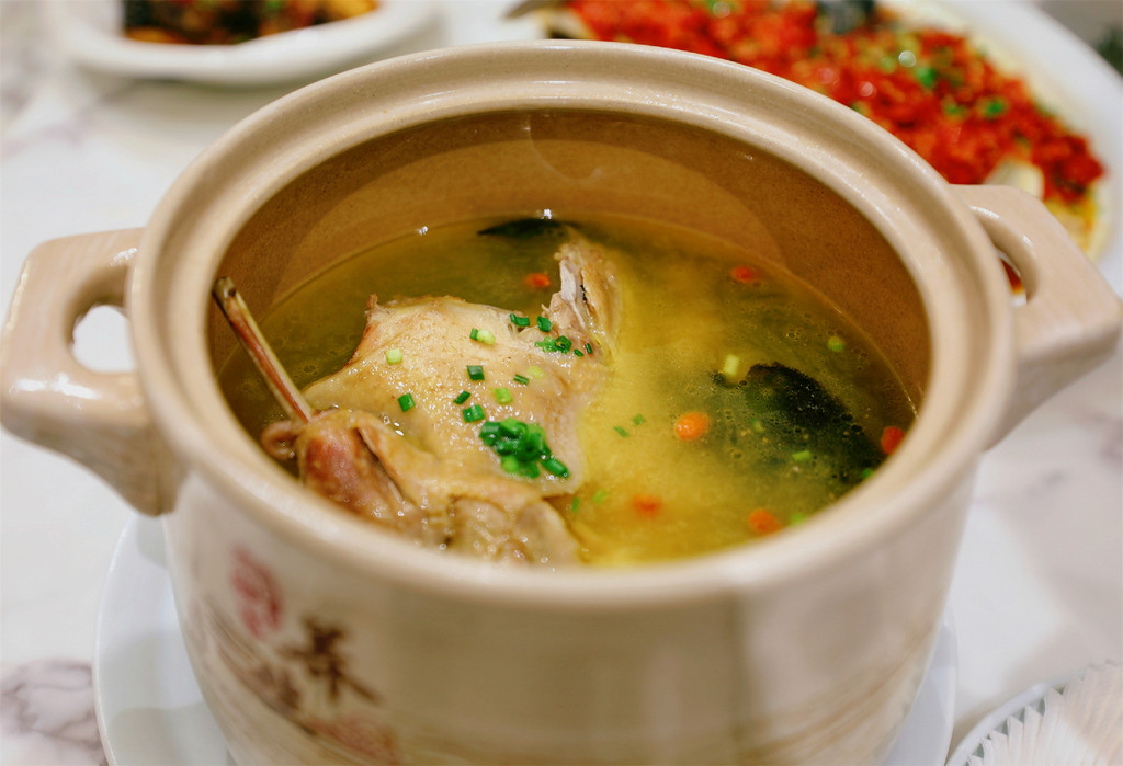 木耳老鸡汤:鸡肉肉质细嫩,滋味鲜美,木耳性平味甘,有补气益智生血作用,两者堪称“黄金搭档”,既美味又滋补。