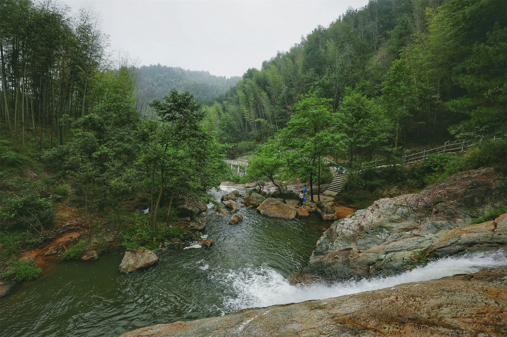 沿着步道一路前行,只见峡谷幽深,林木蓊翳,流水潺潺,飞瀑如练,仿佛置身于瀑布的大观园,尽情地领略山水之雄壮奔放和柔美缠绵。