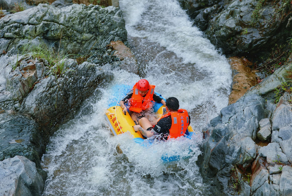 水上漂流滑道架设于河谷之中,全程大概需要两个小时,惊险与刺激并重,用一句话形容就是“划船不用桨,全靠浪”,畅享水上版的速度与激情。