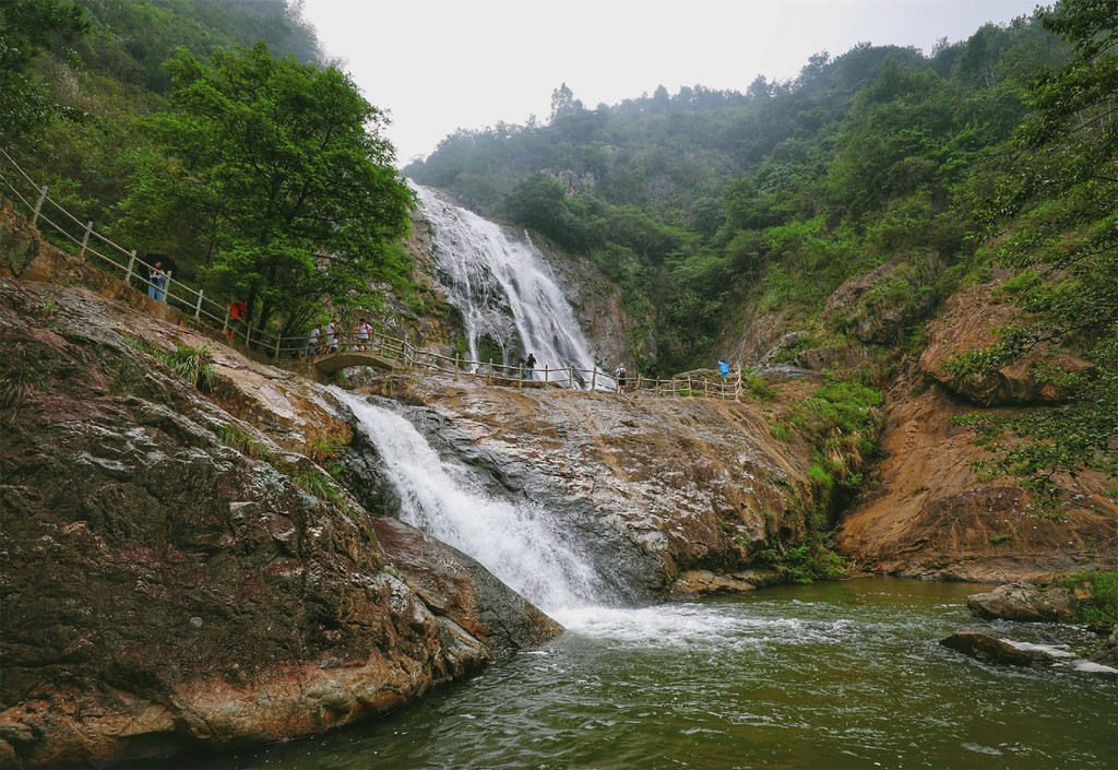 继续走到木桥之后,便可瞧见两道首尾不相连结的瀑布,瀑下有潭,潭下有瀑,潭瀑相扣,曲折连环,因形如“之”字,故而得名。