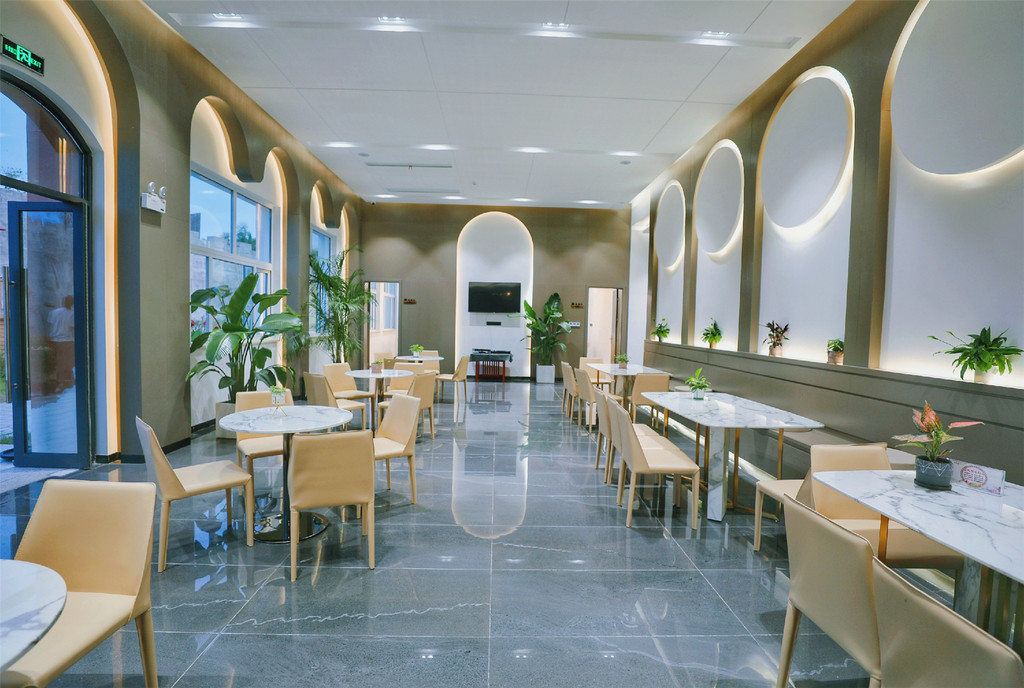 其中,一楼有全日制餐厅、陌上餐厅、酒吧、咖啡吧、图书吧、演艺吧,户外区配有游泳池、烧烤区、儿童游乐区、和草坪餐区;二楼的两侧全部为客房,中间部分是会议室、棋牌室,还有专属私人定制影院;三楼则是豪华套房及商务房,单间面积均超过40平方米以上,非常适合高端消费人群。
