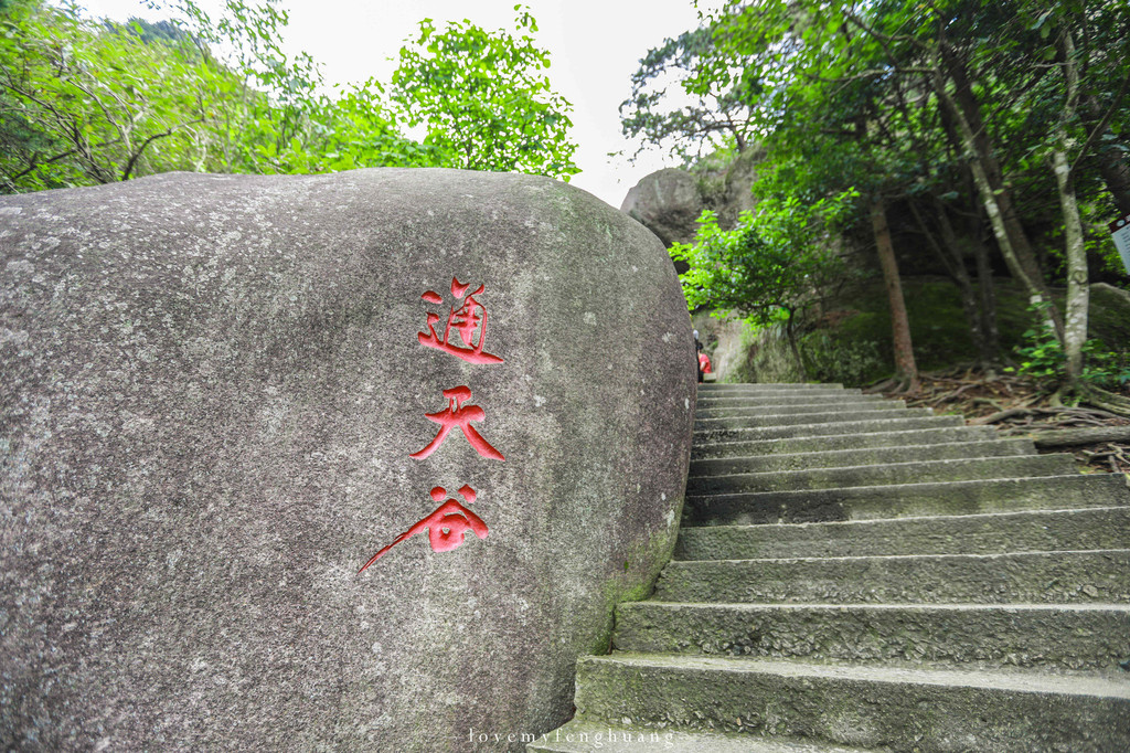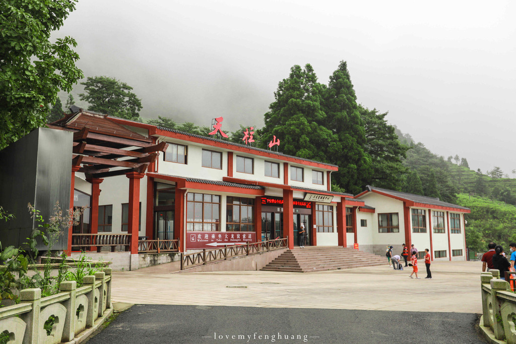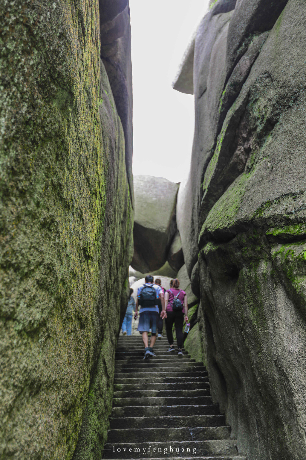 来到天柱山,和小伙伴先来到天柱山索道准备乘坐缆车上山,如果自驾的朋友可以开到大龙窝索道然后再坐缆车,非常方便,下了缆车就开始步行,这段也是徒步登山最精彩的一段,大龙窝索道到振衣岗,再到高奔台、神秘谷,最后达到天池峰,天池峰可以远看天柱山最高峰,如果运气好的话,从侧面看天池峰为脊状峰,峰顶巨石被东西向节理劈开两道裂缝,上架一条石,考验胆量的时候到了,有“人到桥头皆是仙”的说法,如果运气好的话天柱峰渐渐露出,秀美的山川在眼前像是一幅水墨画,慢慢铺展开来。