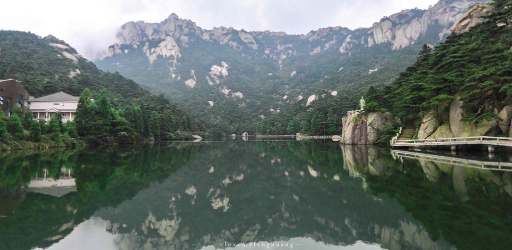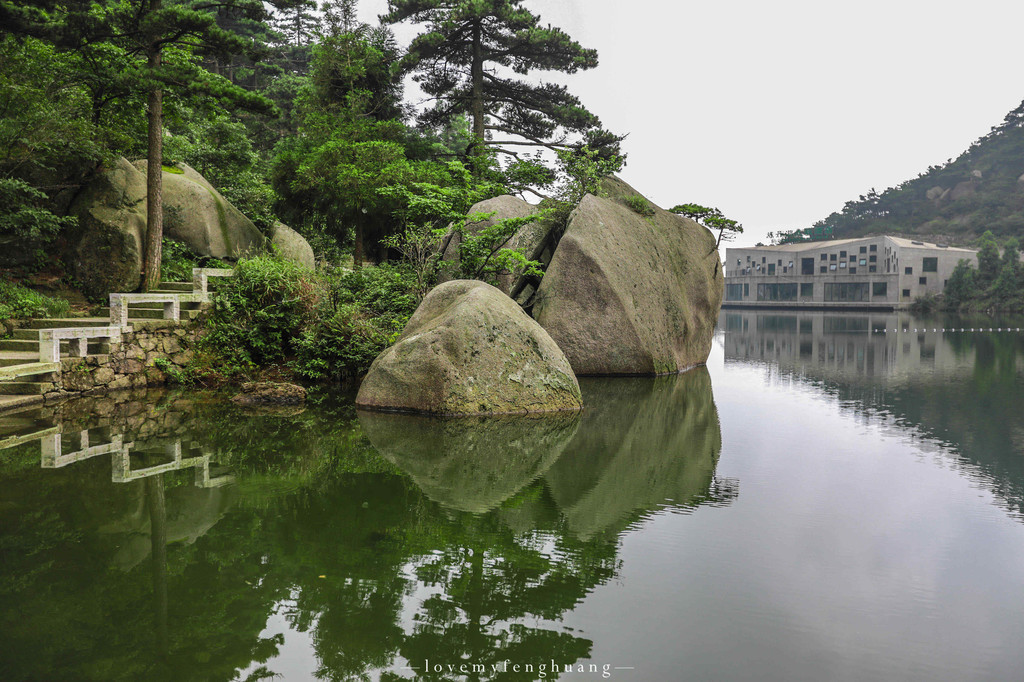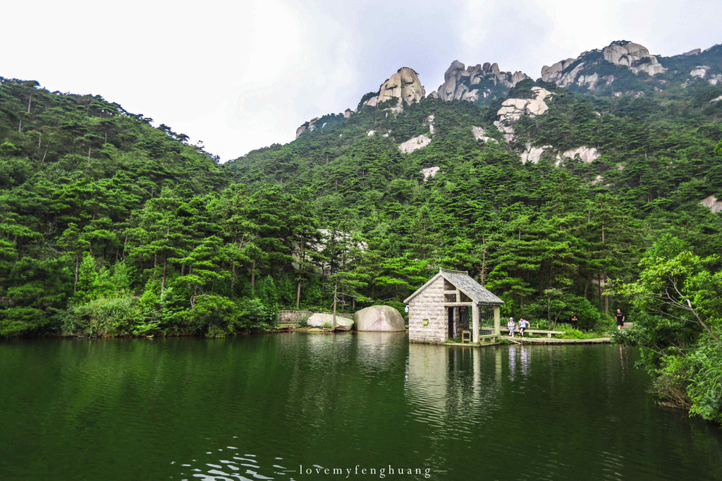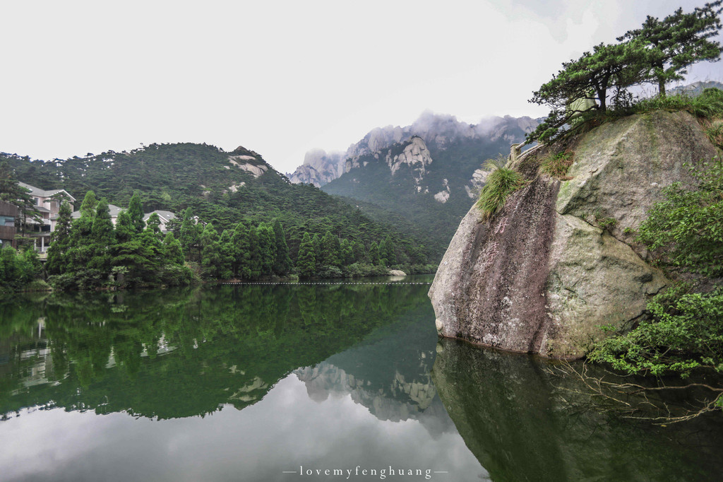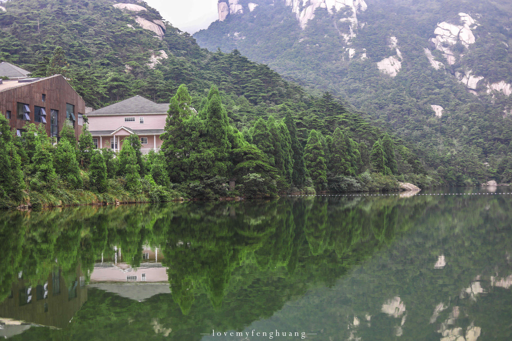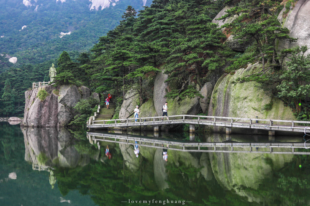 清晨来到炼丹湖,置身湖畔,举目四望,苍崖青松倒影其中,如锦如织,给这平静的水面增添了生机,微风徐来,湖水荡漾,波光粼粼,又是一番景象,泛舟其上,如入瑶池,不愧是安徽天柱山的人间仙境,为国内第三大高山人工湖,能够媲美新疆“天池”和长白山“天山”。