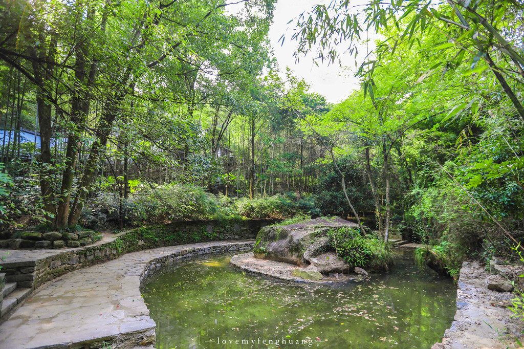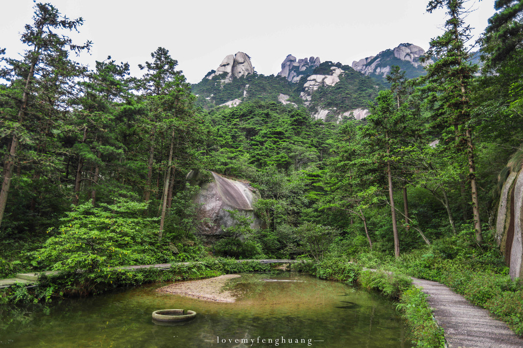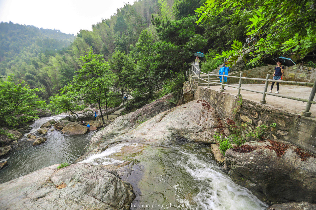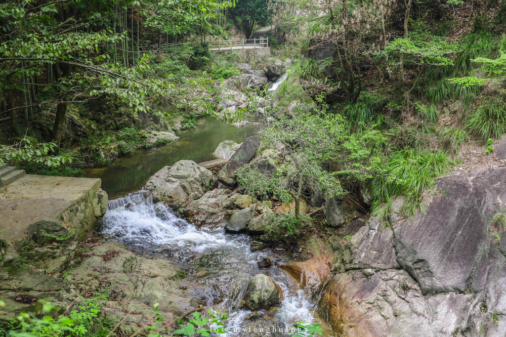 天柱山主要以花岗岩为岩体,雨季来临,暴雨过去,岩体表部裂隙水汇集而畅流于山间沟谷中的清亮溪水里,而位于山谷寺之西的山谷流泉最让人忘返流连。