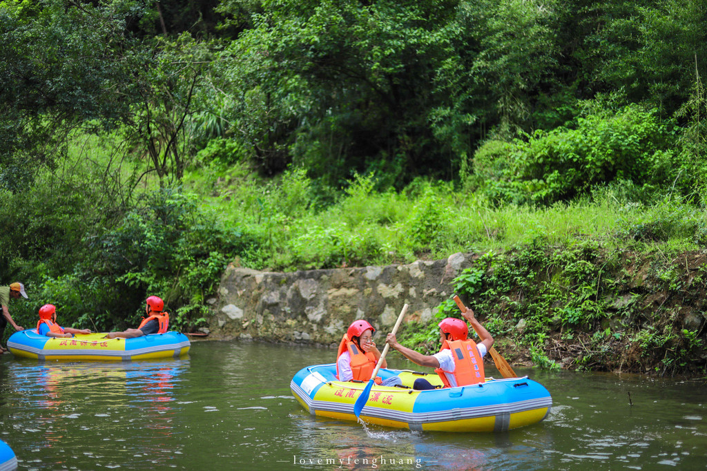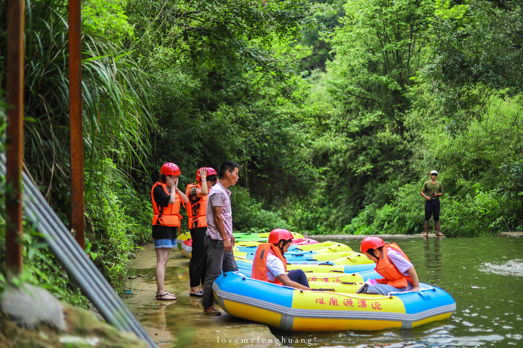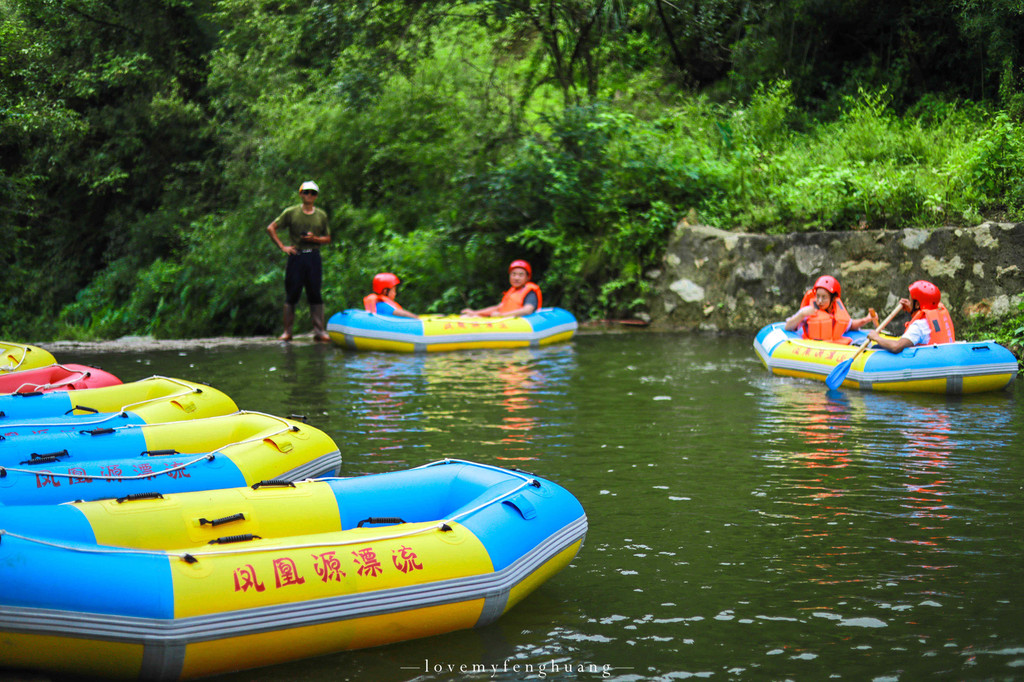 凤凰源漂流拥有矿泉水般水质,河道全长5公里,落差300米,是天柱山穿越原生态山水最惊险刺激的漂流,漂流者称之为“生态画廊水滑梯”和“天柱山下顶级漂”。