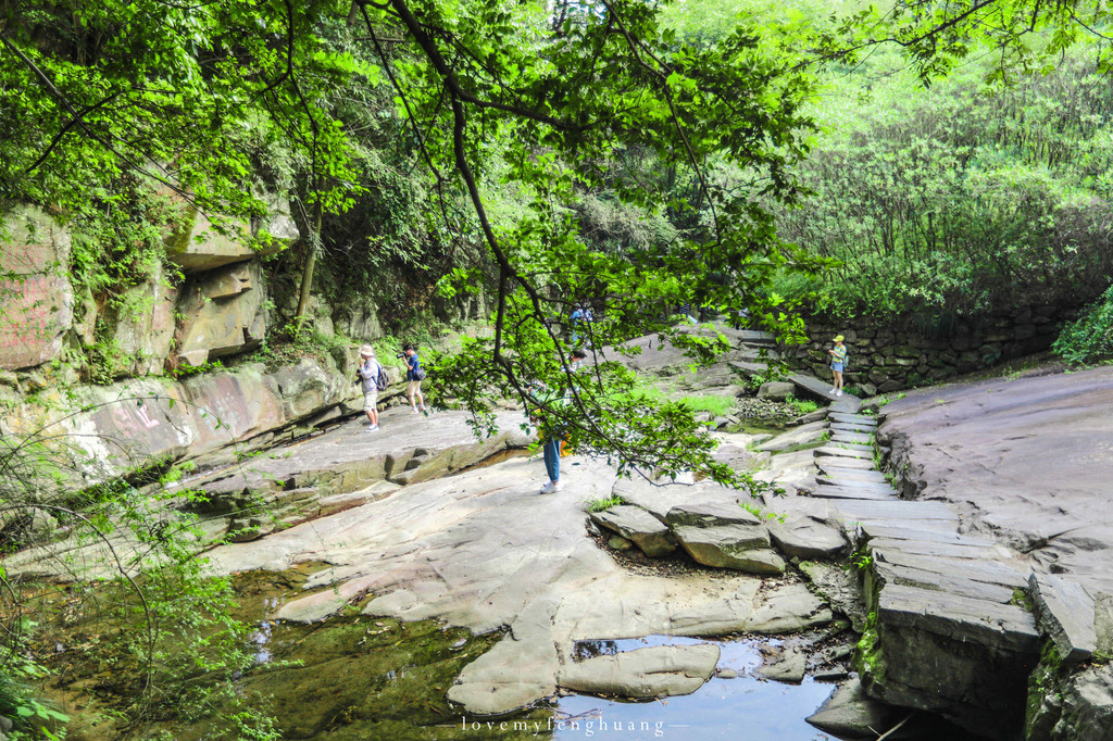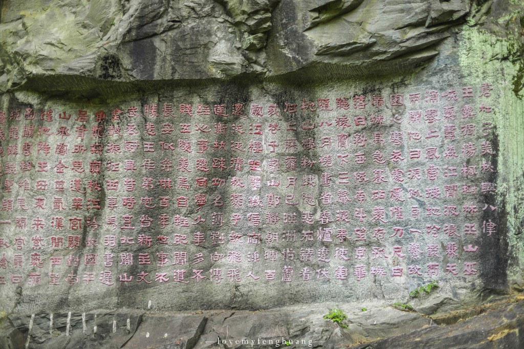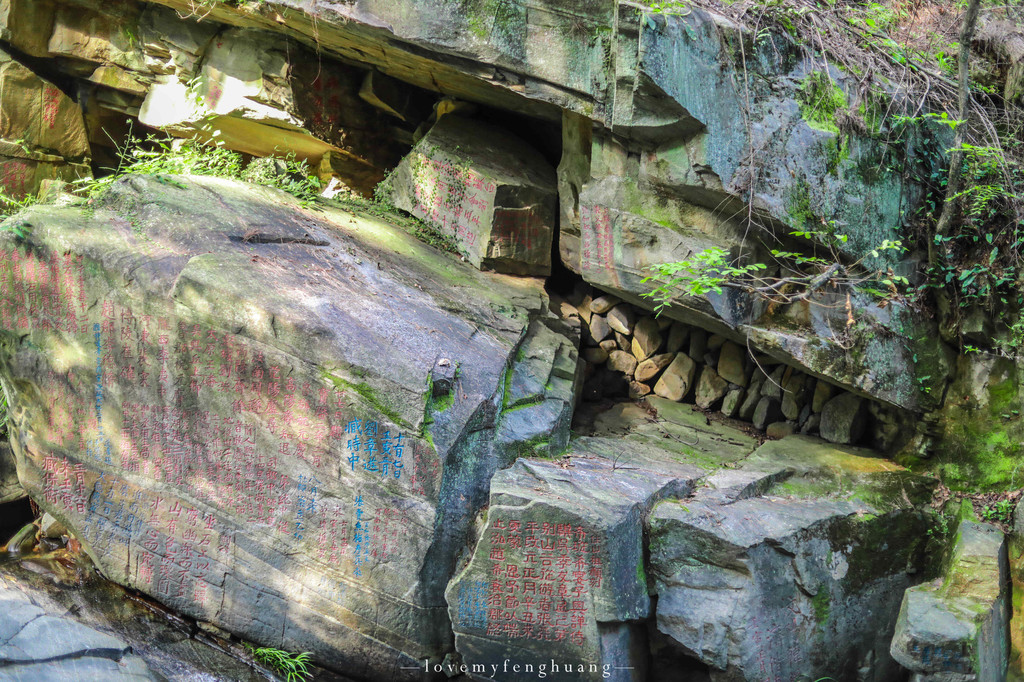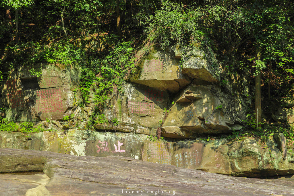 在天柱山脚下,有一个长达1500米的山谷,山谷的两岸都是摩崖石刻,从唐代至今已经有将近300方的名人墨客留下的千古名句,走在山谷流泉就如同走进一座室外艺术长廊中,如果天柱山是大气磅礴的,那么山谷流泉就是温柔婉约的,山脚下的山涧沟壑确实一种小众的静谧之美。