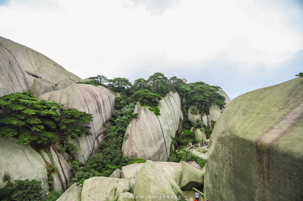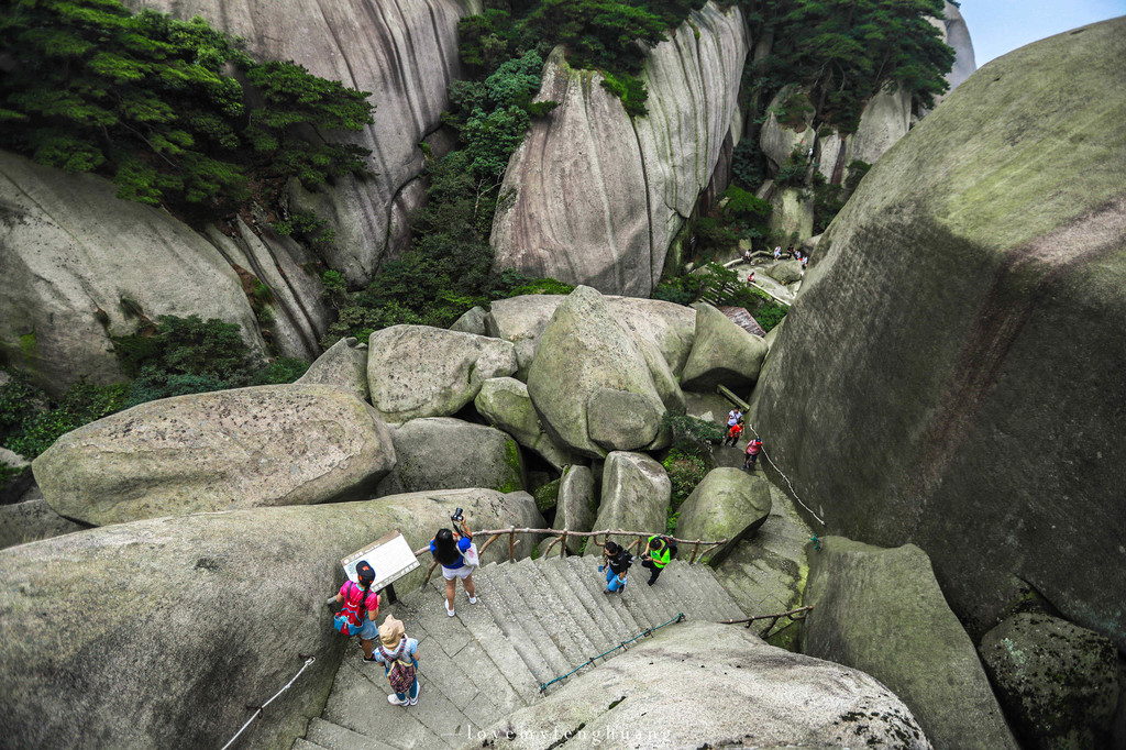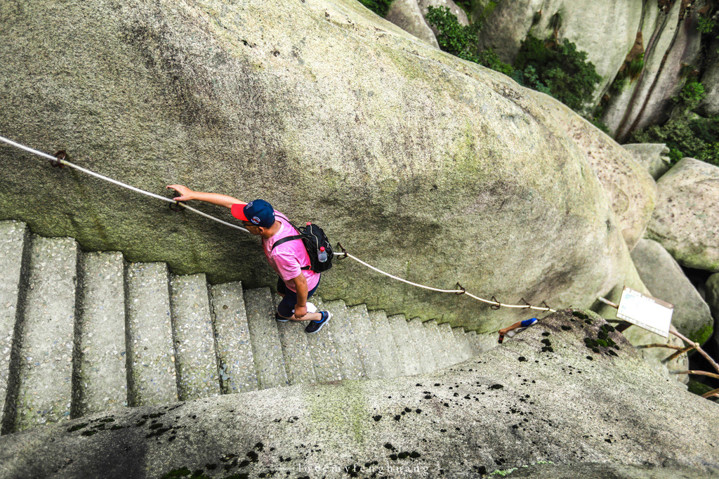 天池峰为天柱山第二高峰,峰顶有天池,天池不但小巧而且也是花岗岩风化的一种表现,如果来天柱山,一定要来体验下迎真峰,接近90度的阶梯,让你不得不手脚并用,上了迎真峰,我们就感到双腿在颤抖,但是风景特别的好,值得一去。