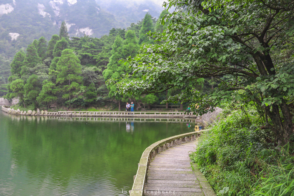 从振衣岗、通天谷、神秘谷到天池峰和天柱峰这段,是绝佳的徒步线路,除了在山顶观看天池峰,我认为最美的地方就是半山腰的炼丹湖了,云雾缭绕下的湖面,仿佛仙境一般,,说是神仙居住的地方一点也不夸张,有图为证,真好美,不愧是在神奇的北纬30度上的山脉。