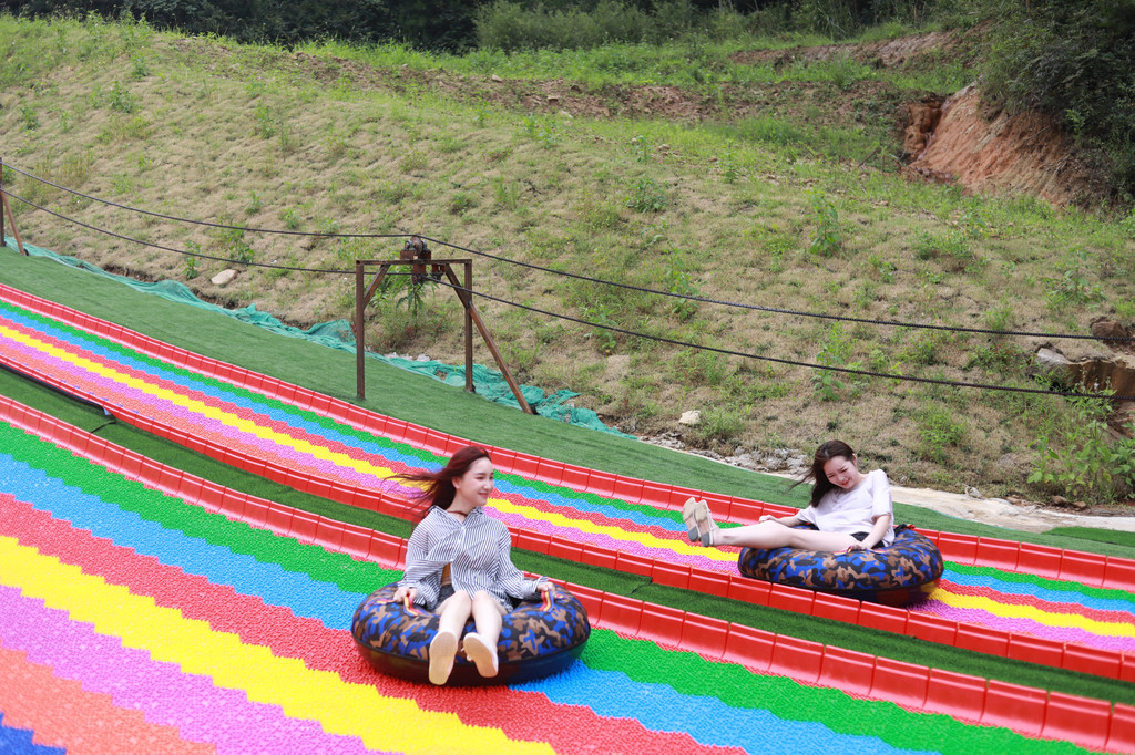 红色、黄色、蓝色、绿色、粉色、橘黄色、紫色,由七种颜色构成的滑道,成为天仙峡上一道靓丽的风景,相比竹尖滑水,七彩滑道更加的刺激,耳边呼啸而过的清风,身下是绚丽夺目的彩虹,驾着七色的彩虹,仿佛自己在腾云驾雾一般,在欢声笑语水中,感受缤纷的快乐时光。