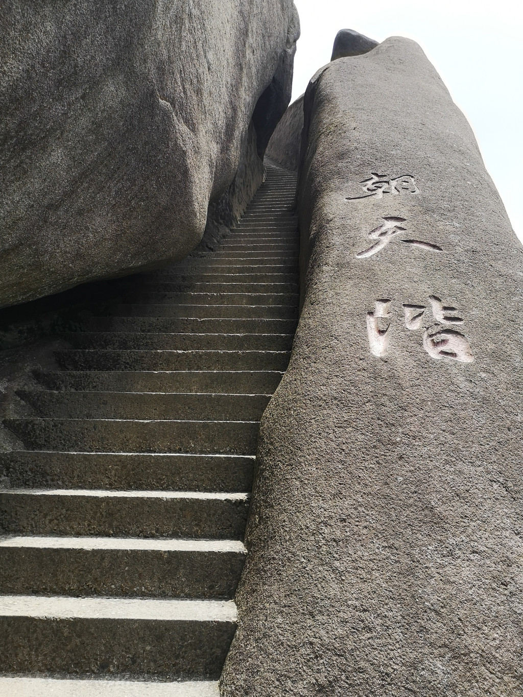 周六上午7点开车上山,20几分钟就到了大龙窝索道的停车场,乘索道上山。天柱山名列安徽省三大名山之一(黄山、九华山、天柱山)。早在汉武帝时就封为“南岳”,国家级重点风景名胜区,国家自然与文化遗产地,国家森林公园,国家AAAAA级旅游景区。天柱山以雄、奇、灵、秀而著称于世,山内植被繁茂,森林覆盖率高达97%,享有“空气维他命”美称的负氧离子是国家最高的Ⅰ级标准的三倍,张大嘴巴多吸几口。