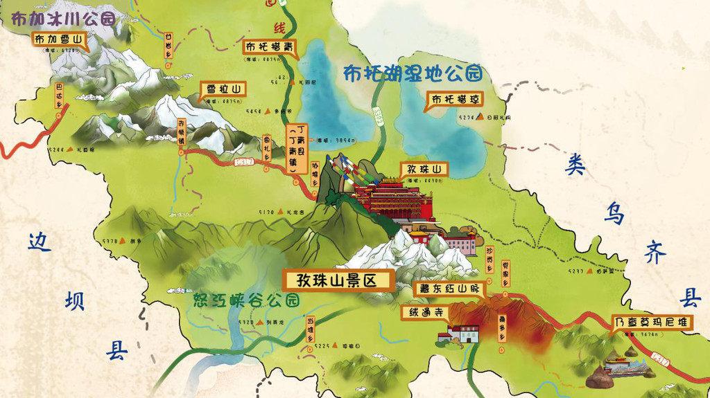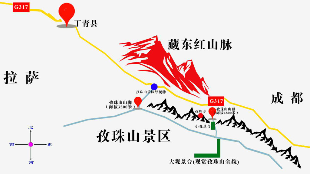从丁青县城出发,沿317国道开车约30分钟的行程会看到清晰景区指示牌,正式进入向往已久的孜珠山景区地界,然后开始翻越43道近乎180度弯度的盘山路。