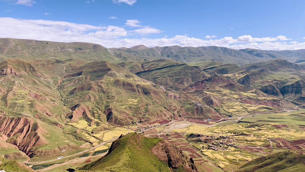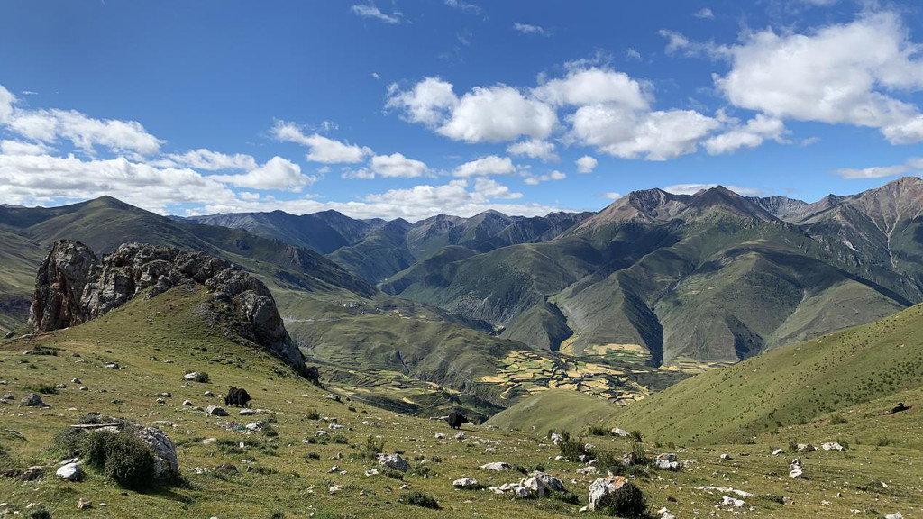 来的路上,小孜一直在内心祈祷:“不管前路再崎岖,请无论如何让我登上孜珠山”。所幸今天的天气出奇的好,沿途的风景更是令人心醉,蓝天白云、雄鹰翱翔、神山环绕......此刻,自己的些许烦恼也被这高原上纯净的清风吹散不少。