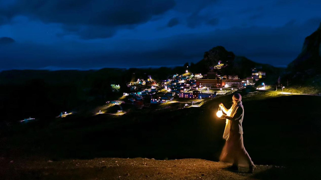 夜幕,安营扎寨守候,只为拍下不同时刻的孜珠,星点的灯光次序点亮,此刻的孜珠山仿佛进入一个梦境的王国,梦里有三千年的慈悲。