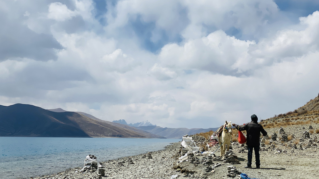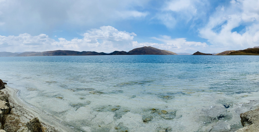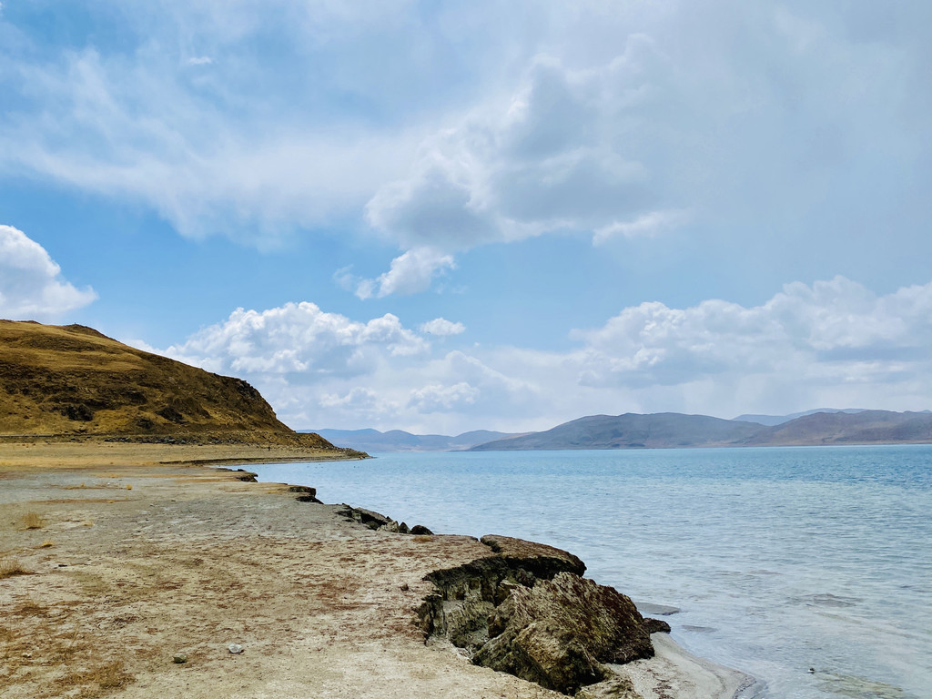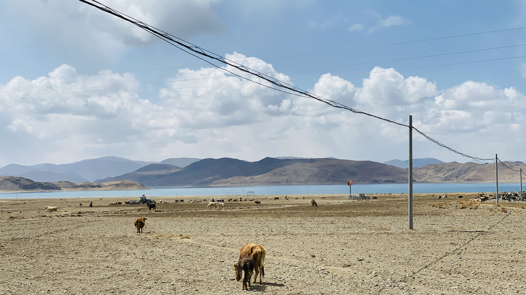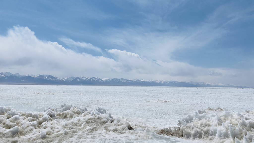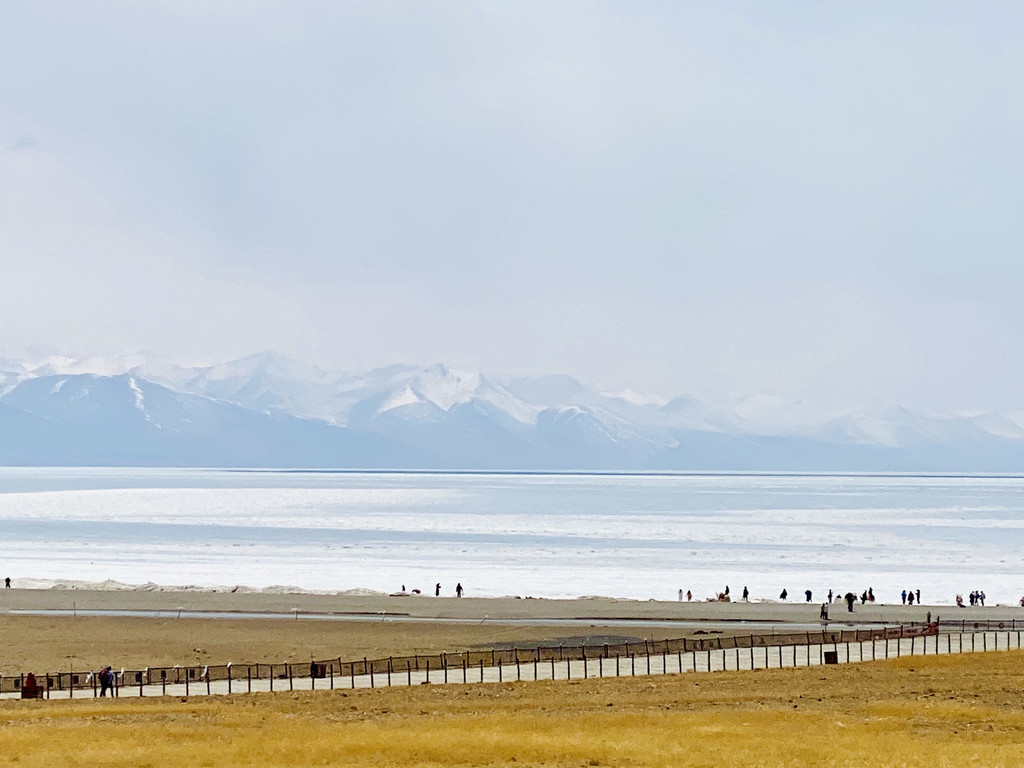 13:30乘坐观光车返回(这个时候的纳木措湖水还是结冰的,没有那种碧水蓝天的感觉,但是依然很美,依然能够让你净化心灵)由于海拔已经在5000左右,我的头又开始疼了,没办法,吸氧!但是那种便携式氧气罐真心不好用,只能稍微缓解我的头疼,我们一行四人来到游客中心取车准备返回,说着路上看见有什么好吃的,准备吃一顿饭。就这样,我们踏上了返回拉萨的路上!