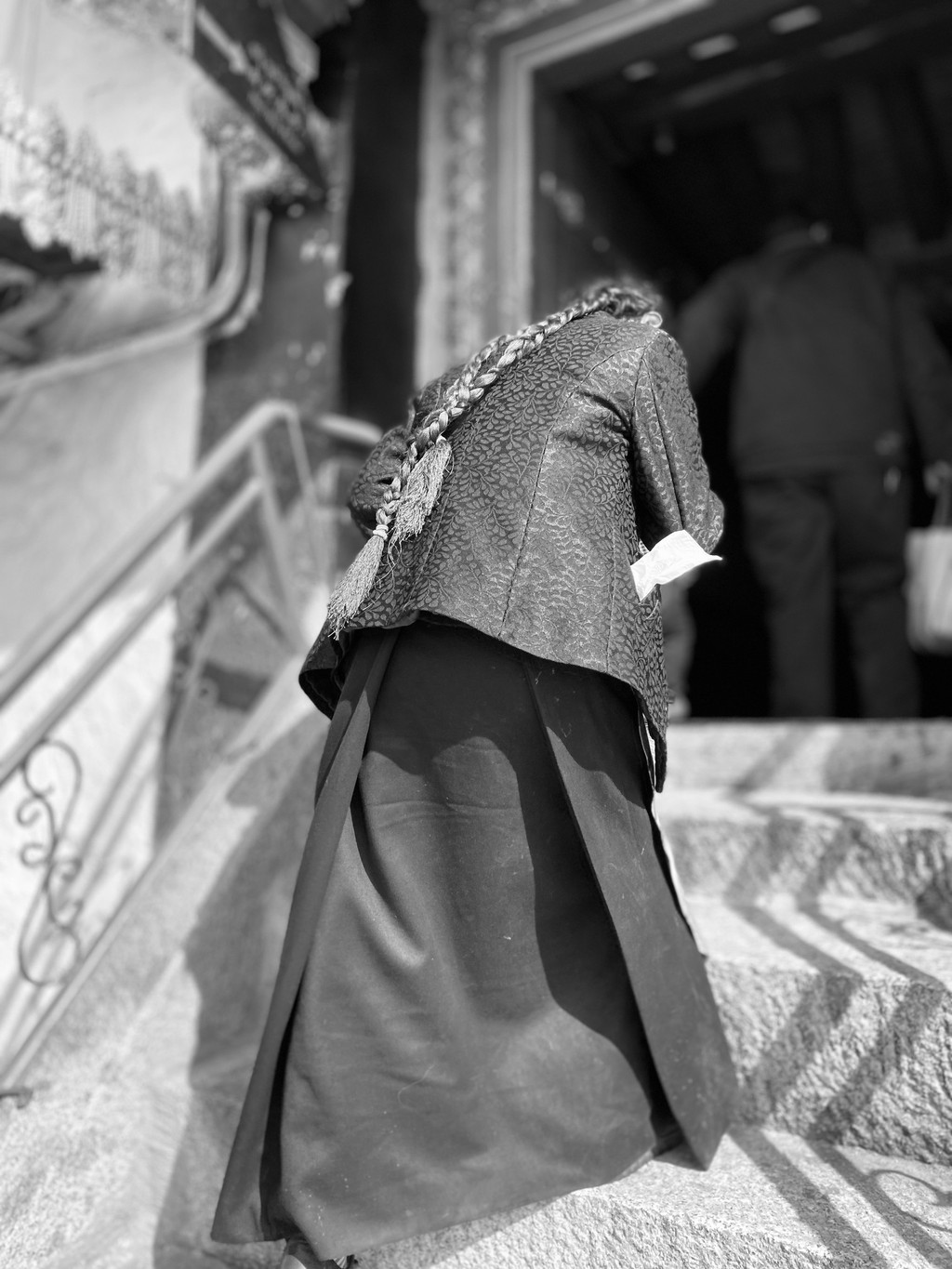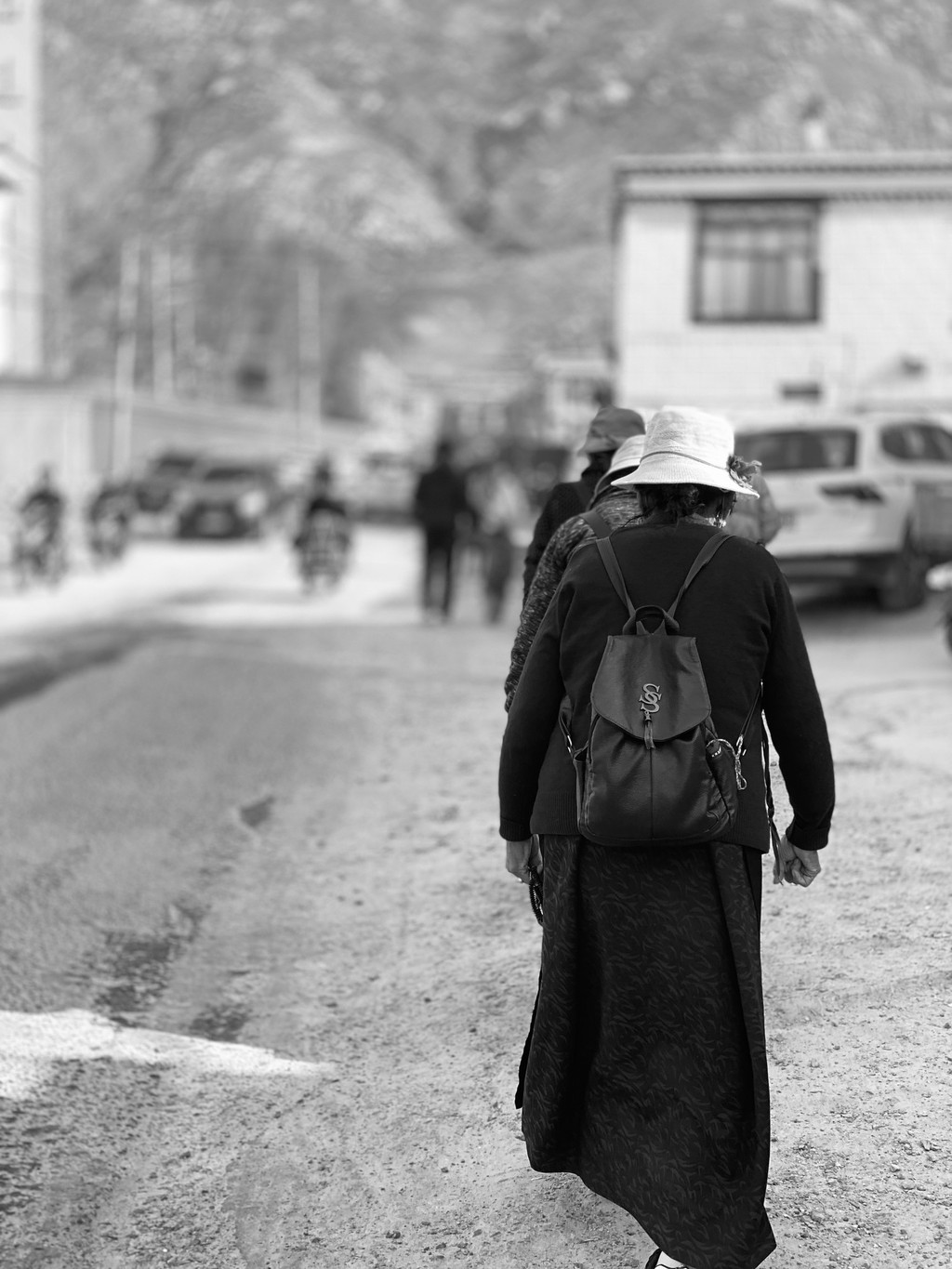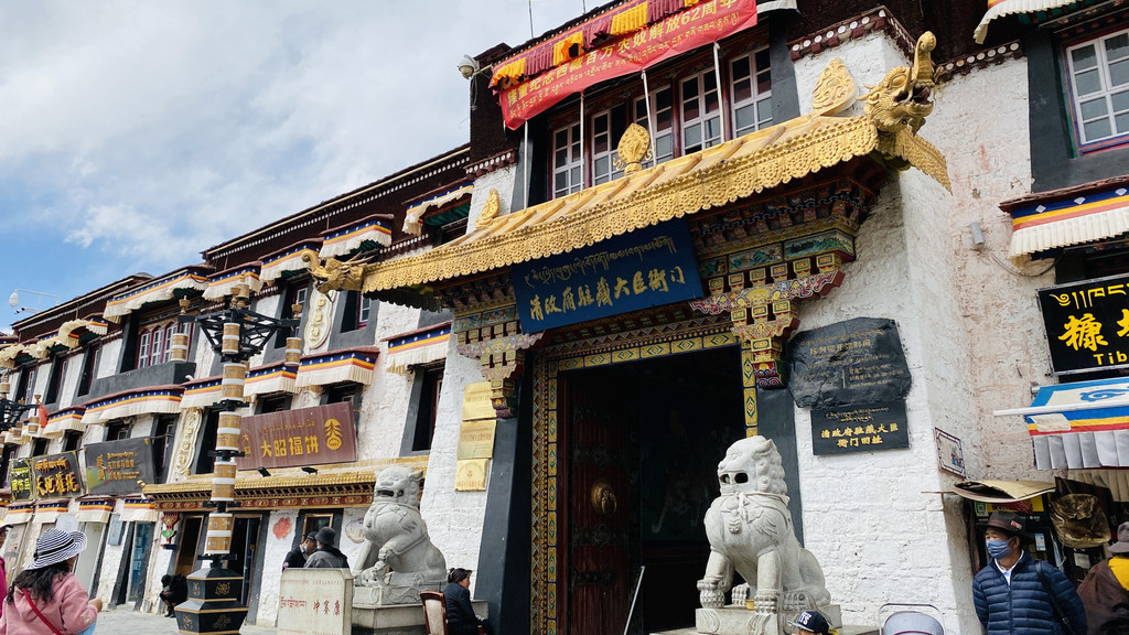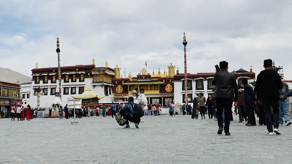 吃过饭,抽根烟,时间来到15:30左右,前往八廓街-大昭寺,还是徒步走过去的,进入八廓街,映入眼前的就是大昭寺,发现门口也是很多人在排队安检进入,我又放弃了(一是因为过安检人多,二是因为需要上交打火机,我在进入布达拉宫就上缴了一个打火机,心疼了!),漫无目地的闲逛于拉萨的商业街(八廓街)形形色色的人群,有当地虔诚的藏民,有穿着藏族服装拍摄写真的女孩,也有出来旅行带着“长枪短炮”职业摄影的人们!