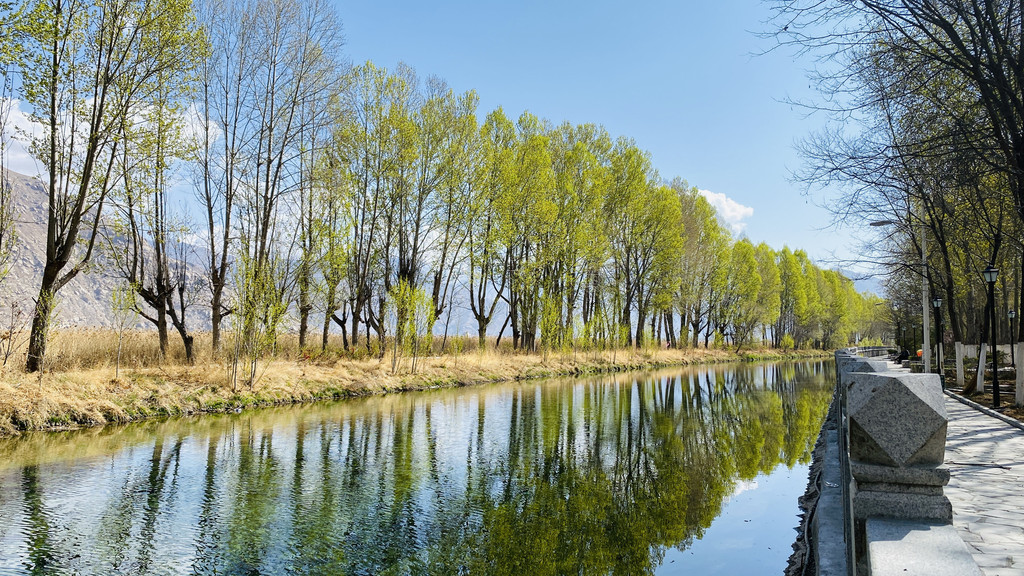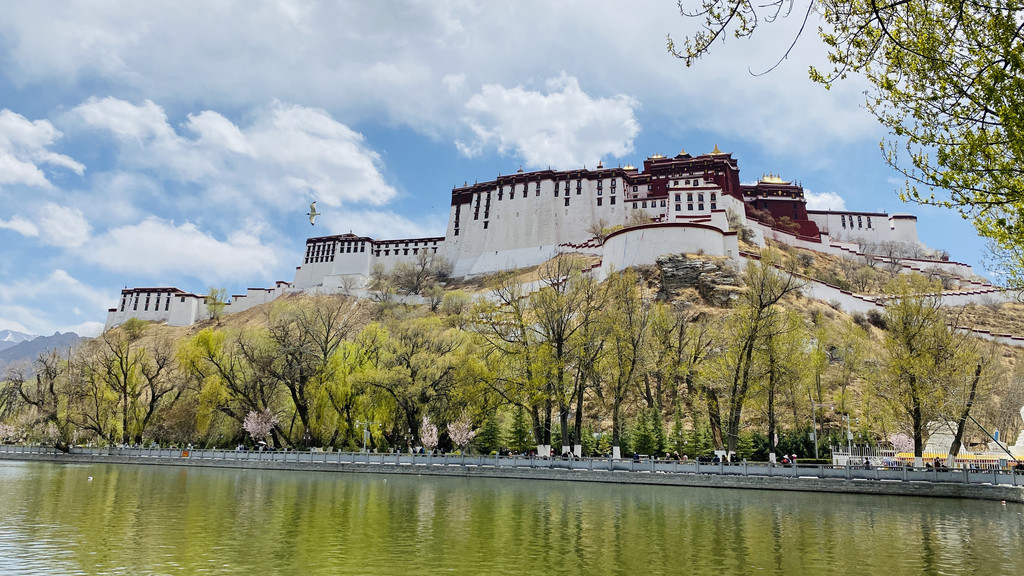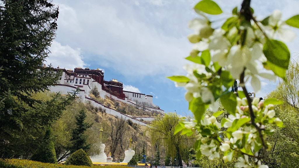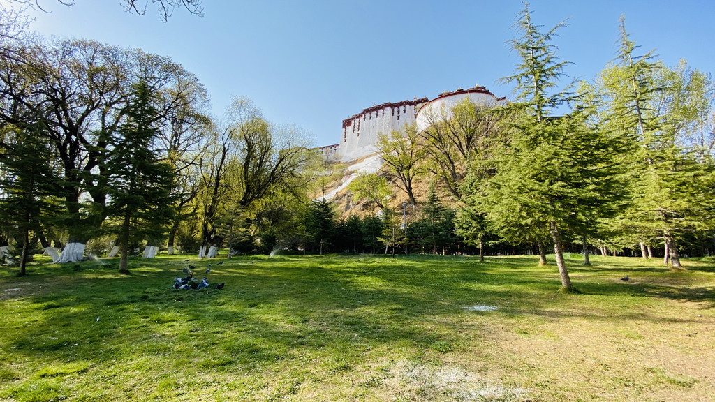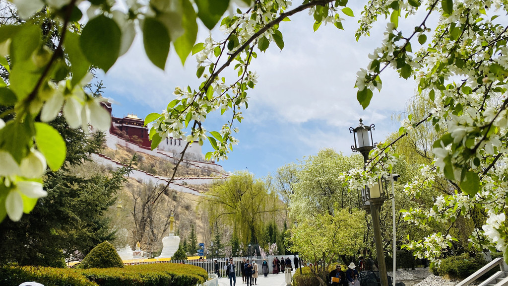 吃过午饭时间来到13:30左右,因为就在酒店附近吃的饭,前文我也提过,酒店就在布达拉宫后面,布达拉宫后面有个“宗角禄康公园”,去公园里转了一圈,有湖水,有樱花,很美!