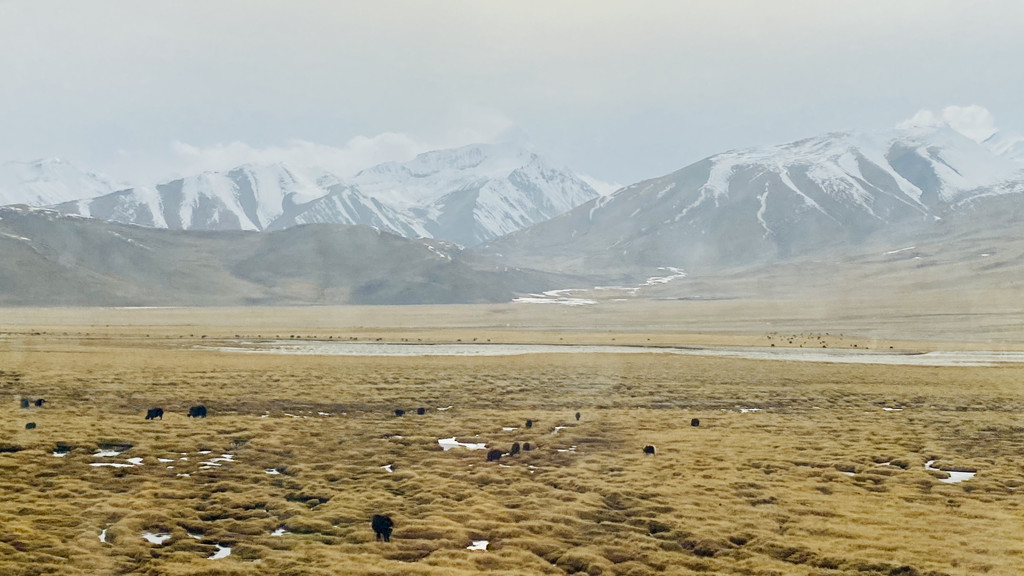 火车刚发出不久后,又看到了绝美的雪山、绵羊、牦牛!(可惜的是我没看到藏羚羊)