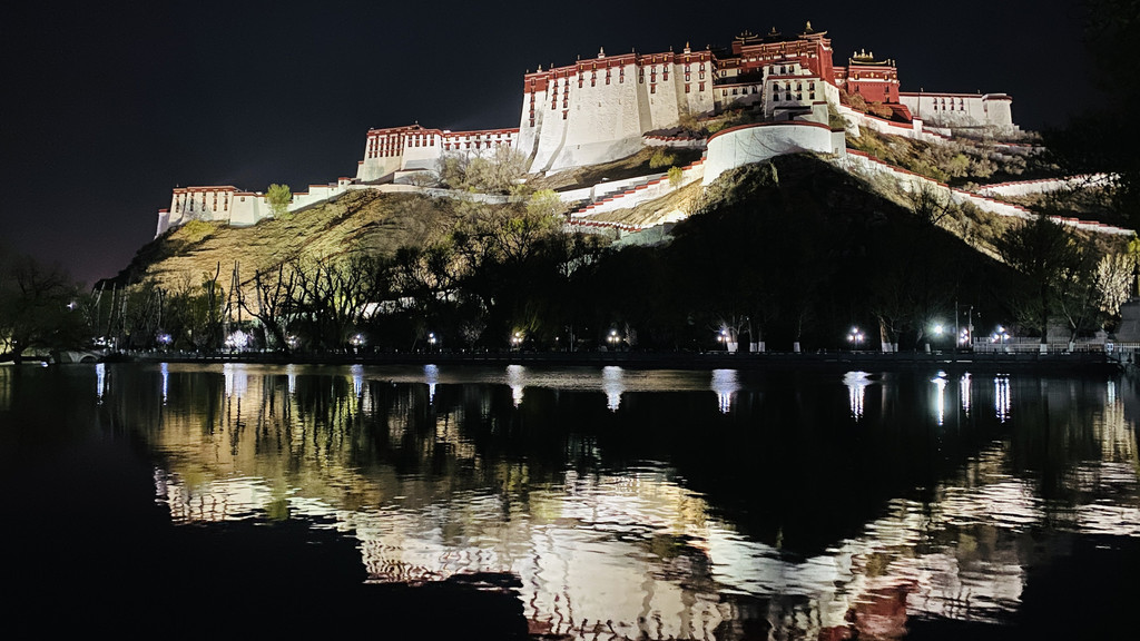 回到房间大概是22:00,看着制氧气喜出望外,什么高反,什么头疼,滚蛋吧!心里有底之后,我说去宗角禄康公园看看夜景吧,因为就在酒店前边,依然是徒步走过去的,第一次感受拉萨的深夜,风有点大、公园人很少、安静!
