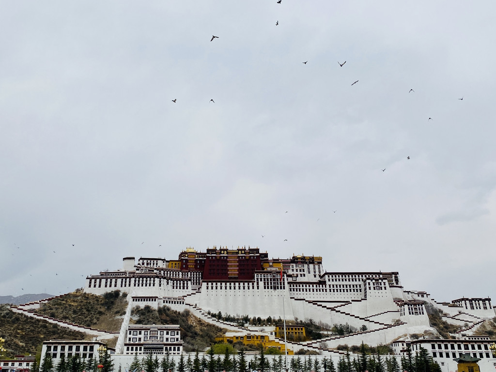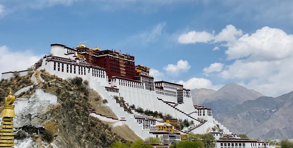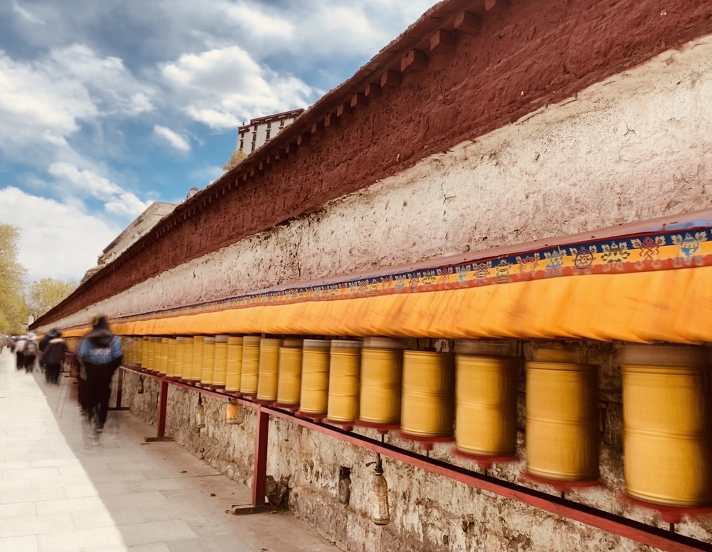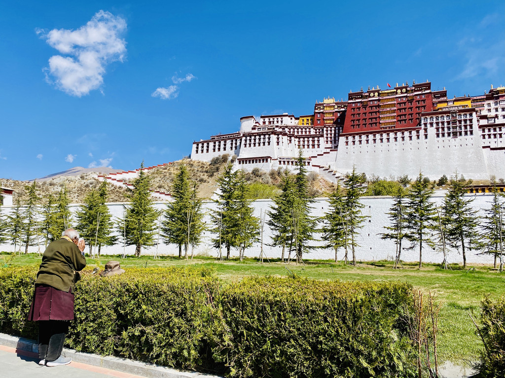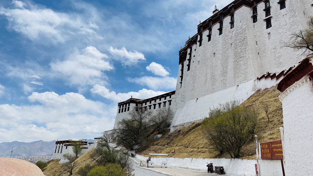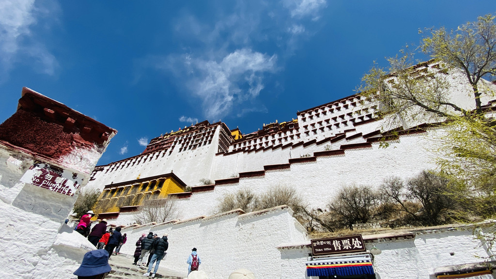 10:00左右结束吸氧,回到酒店开始收拾行李,因为我准备今晚换一个比较好一点的酒店,先把行李寄存在了酒店,背着旅行包出发前往布达拉宫,布达拉宫的门票我在前一天已经在微信上预定过了,因为4月份还是淡季,所以门票为100元,徒步走到布达拉宫安检口大约走了15分钟左右,路上我就和刘姥姥进了大观园一样,走走停停,拍拍照照,在11点左右来到了布达拉宫!