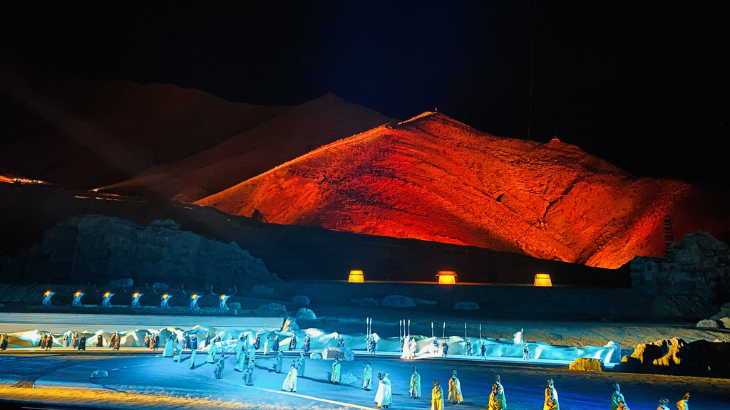在酒店休息到18:30左右,我准备打车前往观看演出地,距离酒店大概8-9公里,路上和司机师傅聊天,他说晚上观看结束后那边堵车比较严重,师傅建议我提前出来打车回酒店,大约20分钟的车程,师傅把我拉到一个半山腰的停车场,告诉我下车后再往上走就是演出大门了,我付过钱,下车后足足缓了五分钟,天啊,一股强大的气压使我呼吸困难,据我目测这个半山腰比我住的酒店高出500米,在西藏这种地方没高出10米的海拔都能感觉出来,别说这是一个半山腰呢。