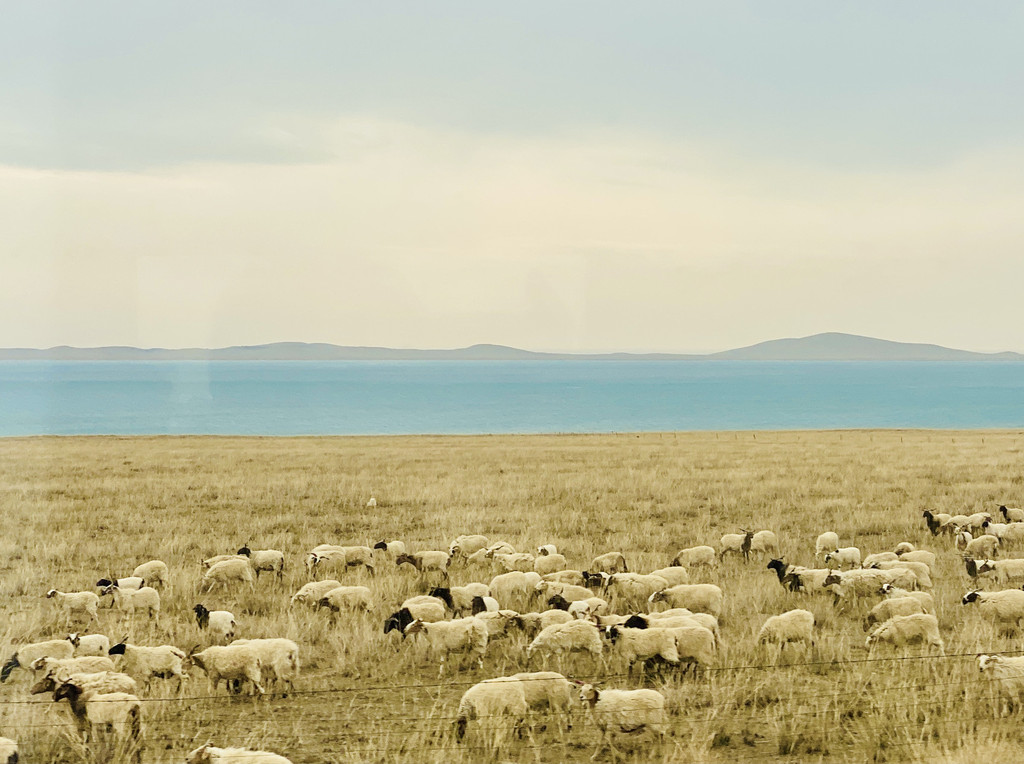 从西宁发车后不久沿途就可以看到传说中的雪山、牦牛、绵羊,记得当时看到第一座雪山的时候,整节车厢的人们都不约而同的拿出手机、相机开拍,基本忘记海拔2800左右带来的一丝丝高反症状了。