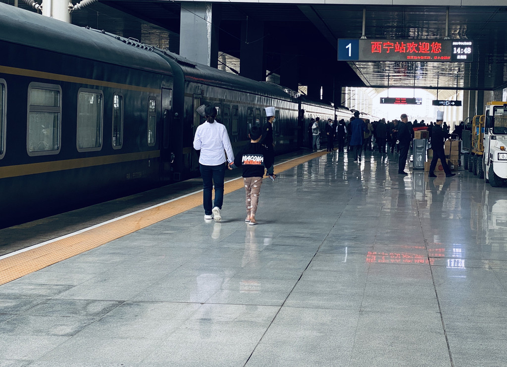 下午3点左右列车到达西宁火车站(停留24分钟,海拔大概是在2600左右),重点来了,青藏铁路线的起点也是西宁火车站,在这里,列车补给,更换内燃机火车头(因为晚上要翻越唐古拉山的),下铺的阿姨一直在车里打牌,到了西宁车站下车活动,测了一下心率,已经达到了115次,我开玩笑的说阿姨,一会可别玩了,太激动了!