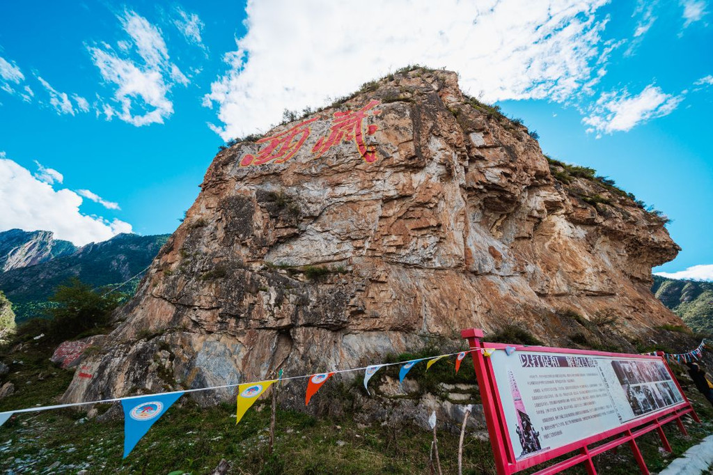 沿着红旗广场向前,即可以看到十八军军营遗址,这里写着十八军当年抢渡金沙江,解放西藏的故事。
