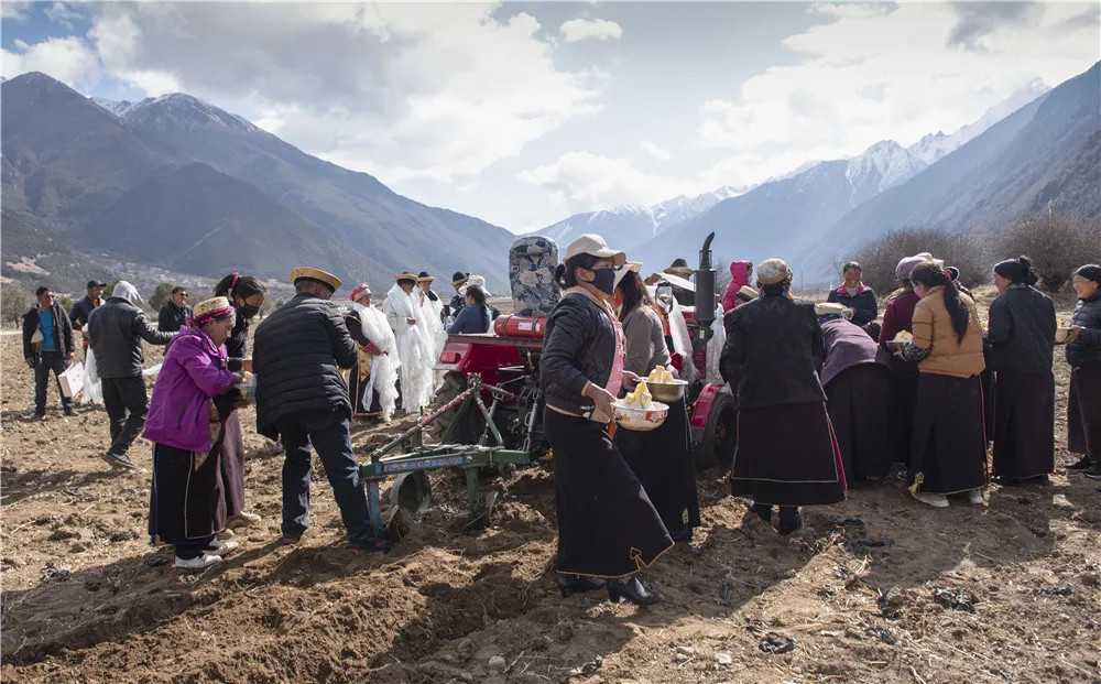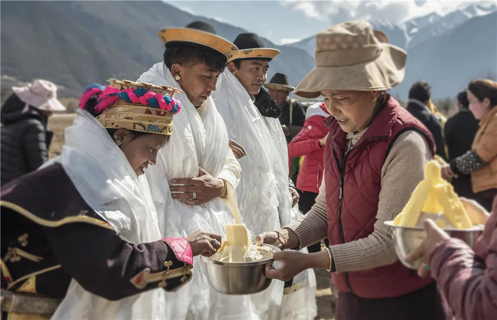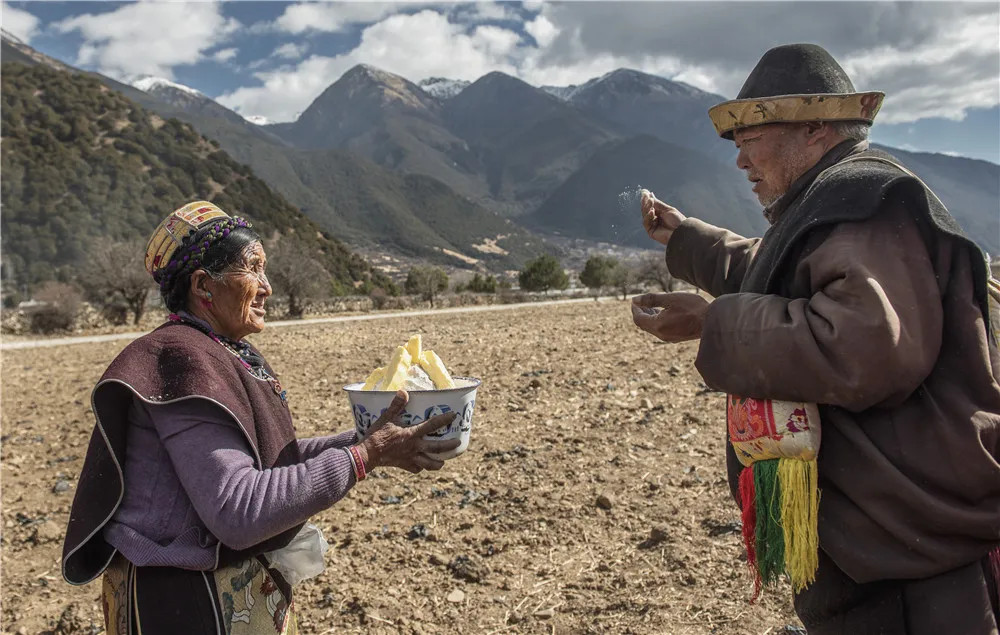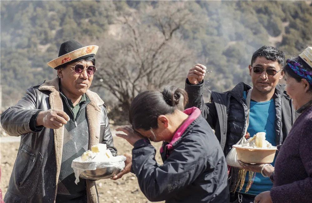 在西藏途中,我们巧遇当地藏民正举行传统的“开耕节”仪式。每年开春时节,藏民们都要隆重举行春耕开犁仪式,作为一种世代相传的节庆活动,代表了西藏的一种农耕文明。在活动过程中,藏民们相互抛洒糌粑,祈愿风调雨顺,五谷丰登。