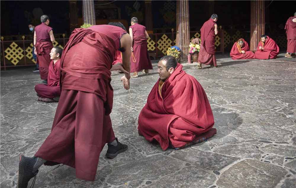 西藏宗教主要是藏转佛教,藏区寺庙众多,其中佛教僧人的生活也是自有特色。他们要在寺庙中参加各种祷告仪式和法事活动,年轻僧人还需要学习藏语文基础知识,背诵颂词祷文,他们在学经时重学习,更重辩经。此外,社会的发展进步也使他们的生活更加的丰富多彩。