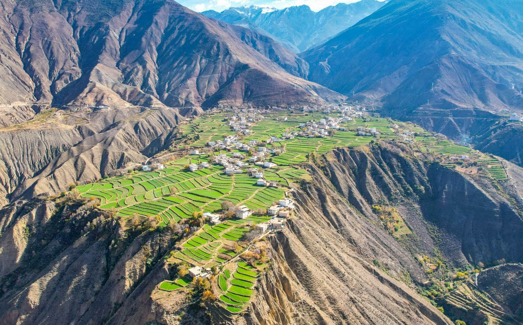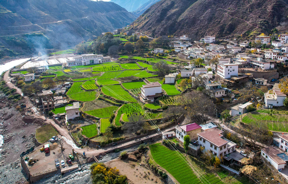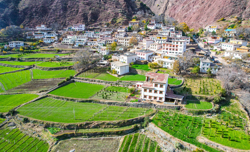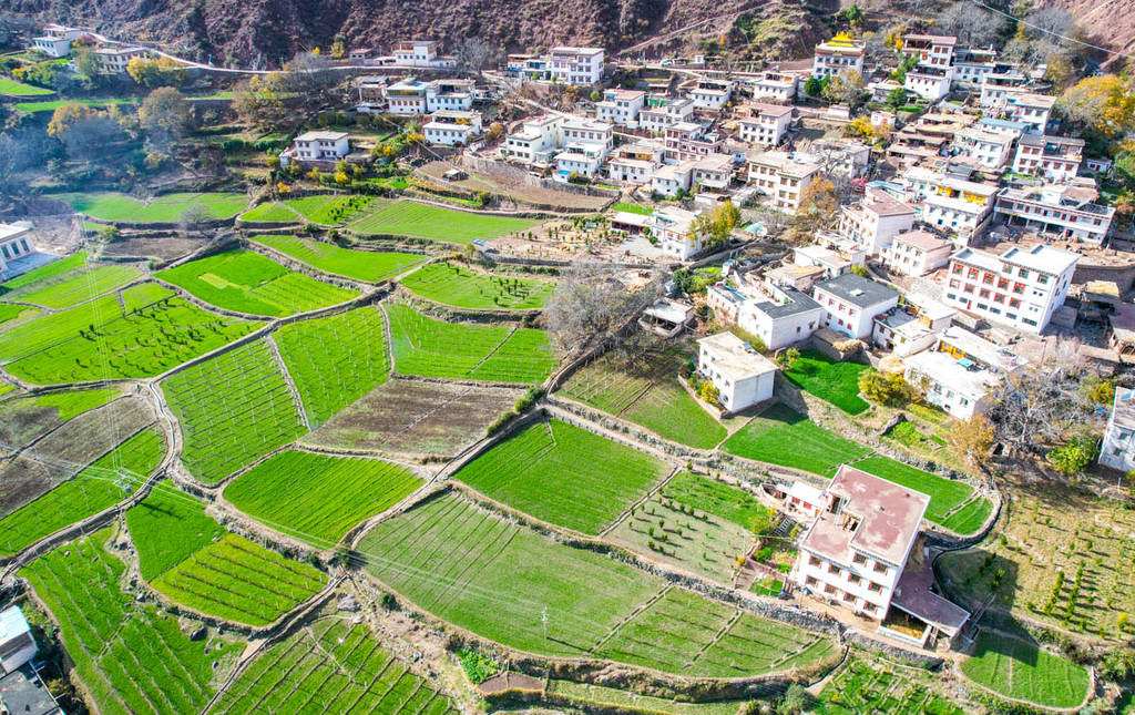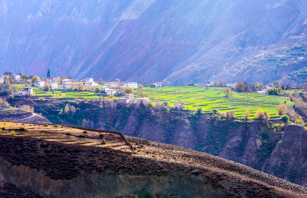 如果我不说这是西藏,有多少朋友会想到这些照片竟然是在西藏拍的呢?放眼望去,这是河谷旁的一个小村庄,家家户户都是小洋楼,村外是一块一块的田地,地里郁郁葱葱的生长着农作物,村民的富庶与生机勃勃的景象堪比江南。