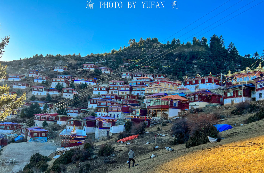 山下的瓦拉寺主寺我们之前曾游览过,所以这一次我们主要游览了德钦山上的德钦日追寺,该寺是瓦拉寺的重要组成部分,它最大的功能就是瓦拉寺僧人闭关的场所,据说修行者闭关期间,他们便独自居住在一间小房内,只喝水、吃少量食物,整日打坐悟经,一般两到四年方可修成出关。