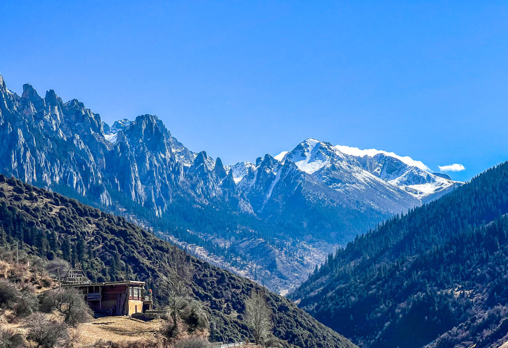 离开十八军军营遗址,我们来到著名的雪巴秘径谷,该谷位于青藏高原的东南边缘横断山脉与三江流域构成的大型纵谷区,这里山岭陡峭,绝壁如削,奇峰林立,千姿百态。山下溪流纵横,林木茂盛,山头岩石裸露、寸草不生。远远望去层次丰富,美不胜收。