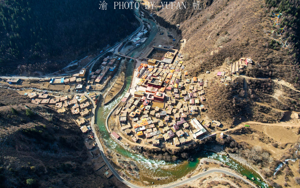 夏天的时候,我们也曾来过这里,彼时云蒸雾锁,牧场如茵,谷中既有成片的高原牧场,又有茂密的原始森林,既能看到陡立的山峰,也能看到平坦的农田,再加上最具藏式特色的房屋,正如它的名字一样,仿如藏在大山深处的人间秘境,真有一种世外桃源的韵味。