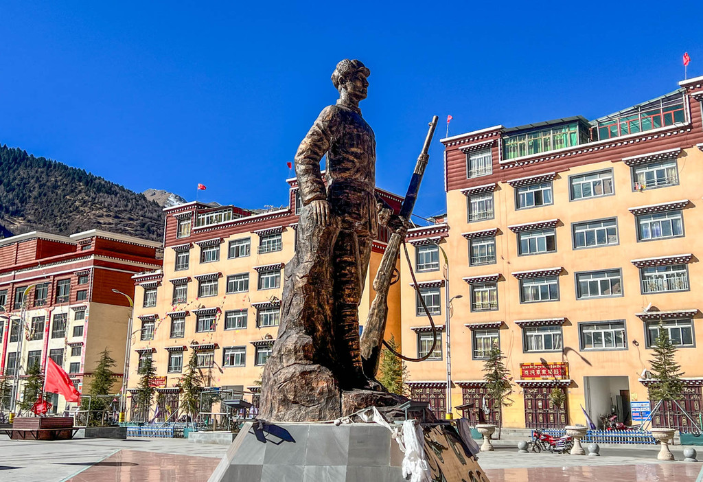 进入岗托镇,第一眼便看到了具有鲜明特色的十八军军营旧址,在这里真实现现了当年十八军战士们从四川强渡金沙江,在岗托村打响解放西藏第一枪、在西藏升起第一面五星红旗的英雄事迹。参观着里面的图文资料,仿佛十八军战士不怕牺牲,冒着枪林弹雨一边划船一边往前冲锋,鲜血染红了金沙江沙滩的一幕近在眼前,让我们重温了金珠玛米不怕牺牲的大无畏革命精神。