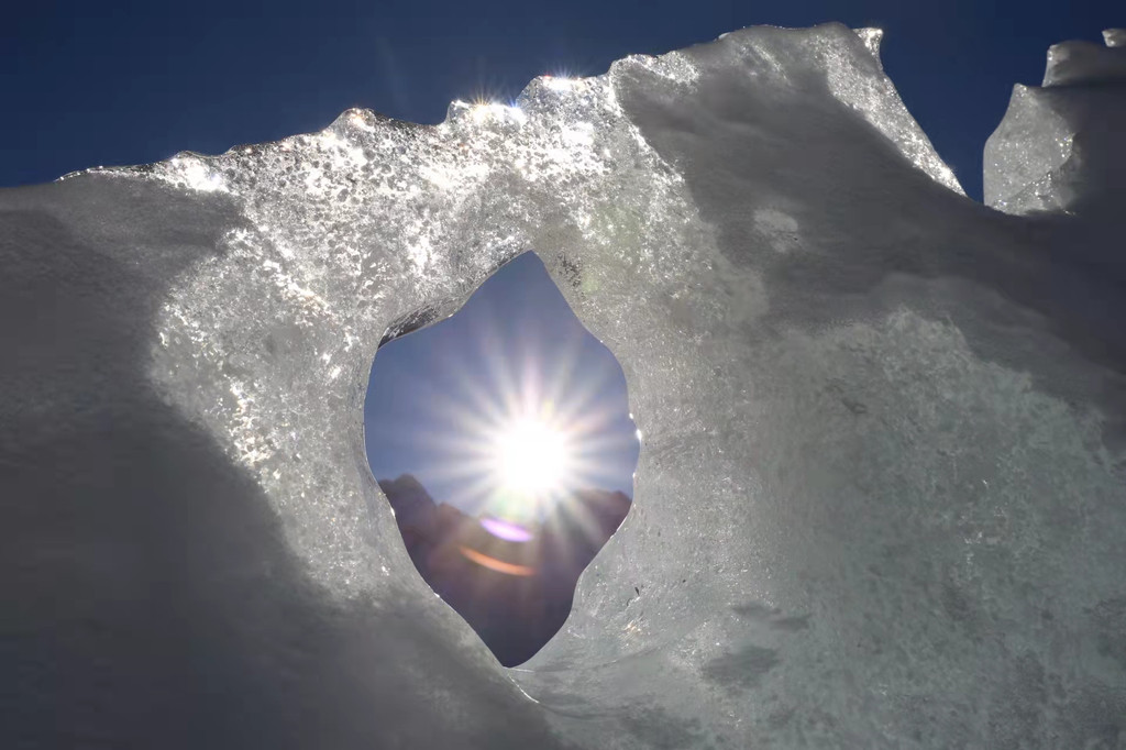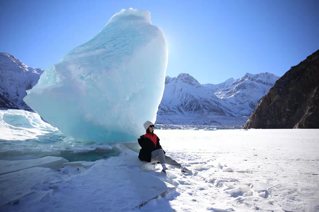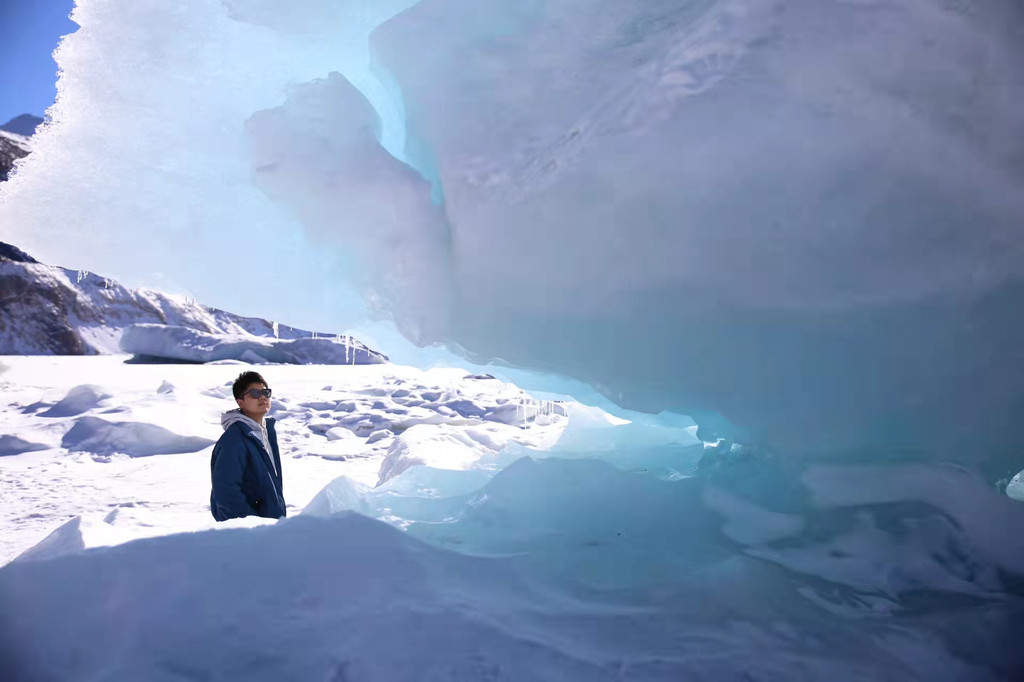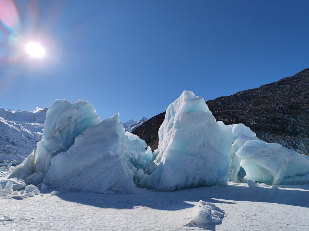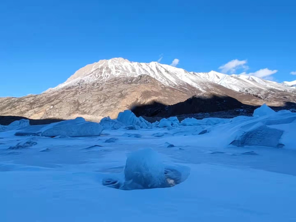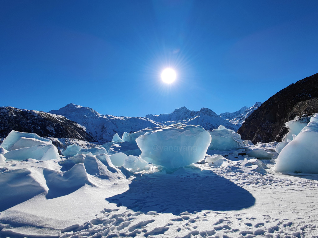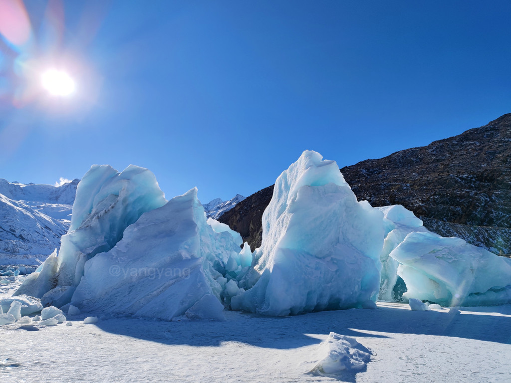 下午开到了然乌湖,去看免费的冰川,湖面上有非常漂亮的蓝冰,朋友和冰岛的一样,哈哈哈哈,不用出国那么远,一样可以看见同样的风景奥~~