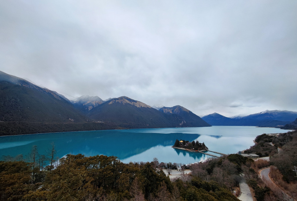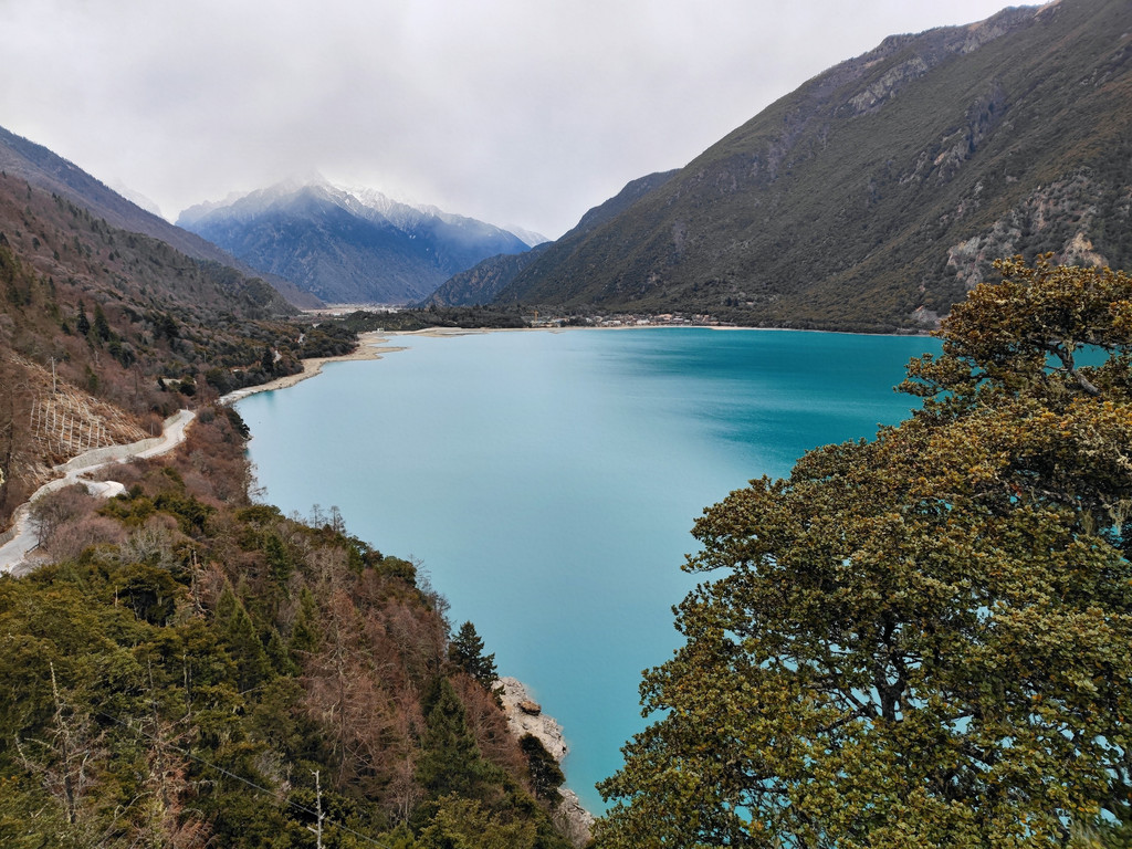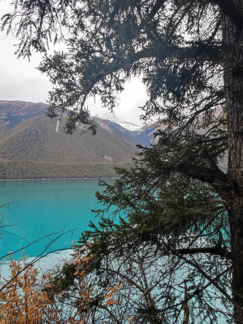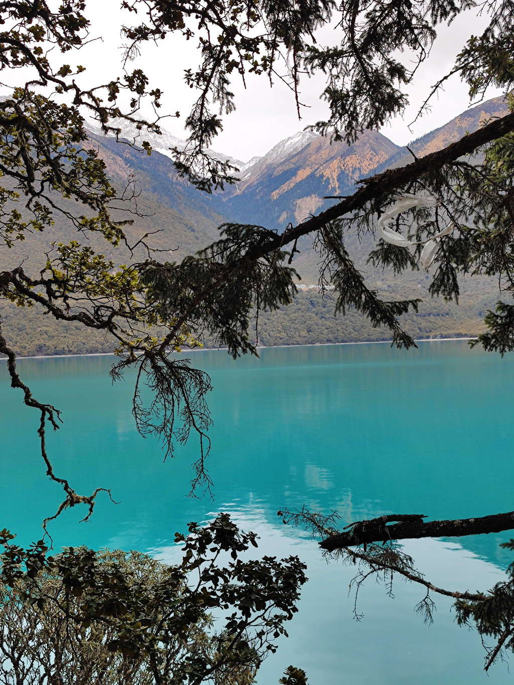 3号(拉萨-林芝鲁朗小镇),川藏线的第一天,从拉萨出发一直是多云的天气,在拉萨每天都是蓝天白云,很少有多云天气,中午到了去往巴松措方向的转站小镇子,有很多店不开了,元旦很多人已经回去过年了,吃完午饭想着巴松措出发....景区人很少,买好票坐大巴车进去,看到的游客非常少,大概冬天的关系,没有下雪看不到白雪皑皑的景色, 元旦后面的景色有些秋景的感觉,黄黄的,加上多云的天气...