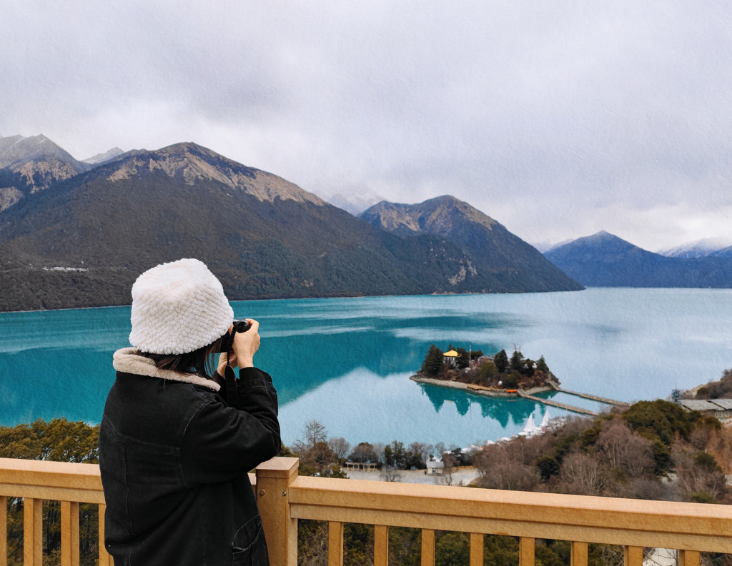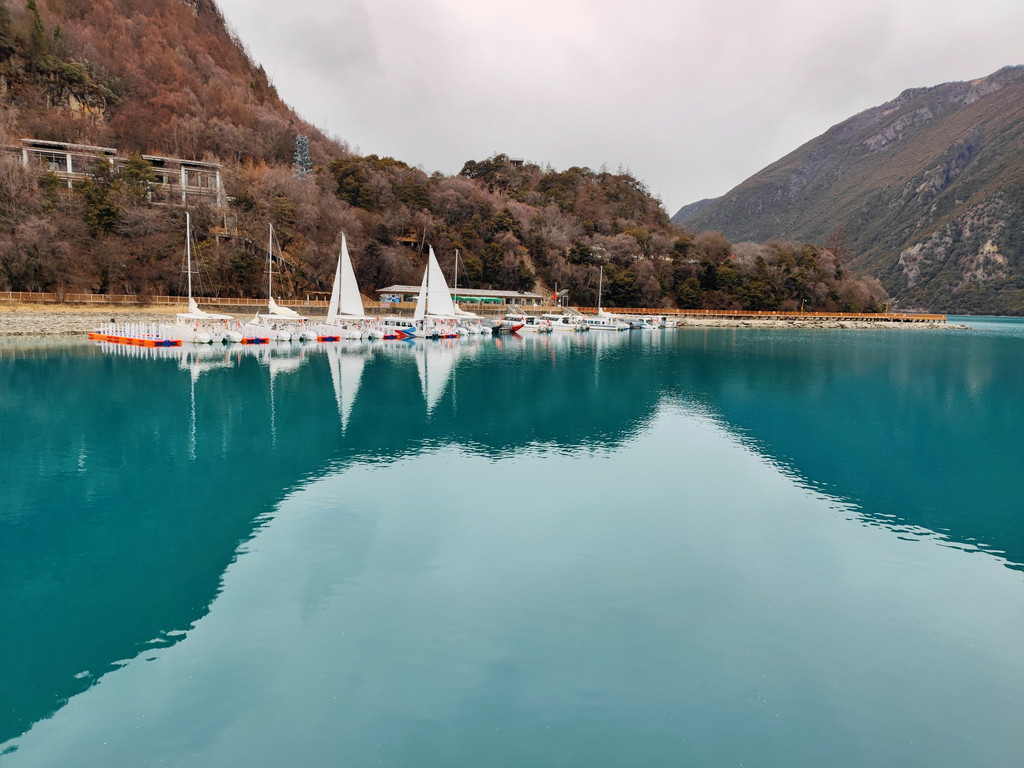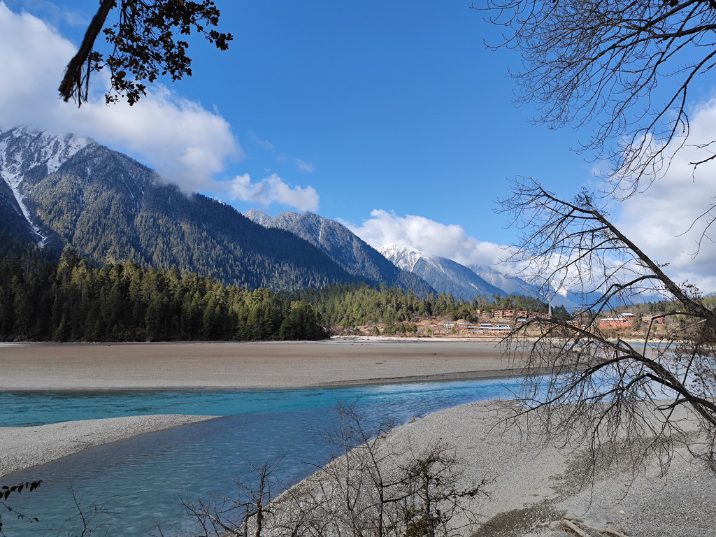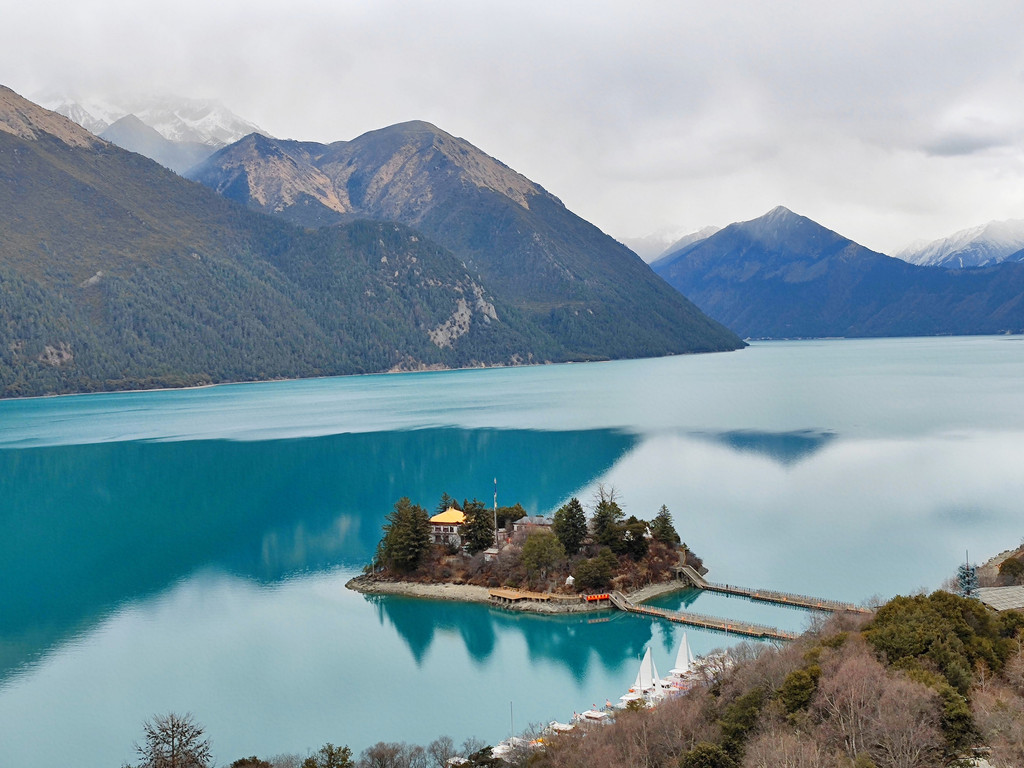 3号(拉萨-林芝鲁朗小镇),川藏线的第一天,从拉萨出发一直是多云的天气,在拉萨每天都是蓝天白云,很少有多云天气,中午到了去往巴松措方向的转站小镇子,有很多店不开了,元旦很多人已经回去过年了,吃完午饭想着巴松措出发....景区人很少,买好票坐大巴车进去,看到的游客非常少,大概冬天的关系,没有下雪看不到白雪皑皑的景色, 元旦后面的景色有些秋景的感觉,黄黄的,加上多云的天气...