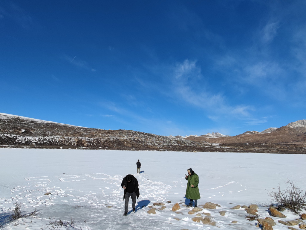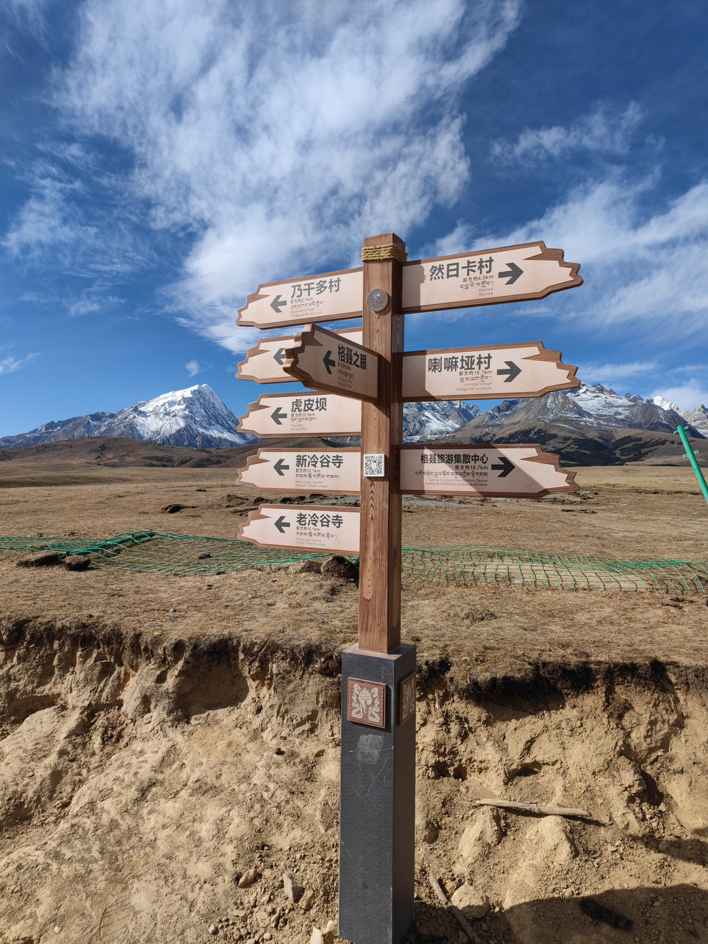 6号(巴塘-理塘)去顶真的家乡看一看,海拔最高的镇子,因为是从西藏慢慢走过来的所以在理塘也没有高反。巴塘到理塘并不远,几个小时的车就到了,但去丁真的家所在的地方就比较麻烦,路不是太好走,拐来拐去,去那边可以看格聂深山,山顶有个格聂之眼,就是丁真和谢霆锋录节目的那个山上,一个不算大的水坑坑,而且冬天去的时候还给冻上了。不过能想象夏天的时候这里有多美,雪山加上神泉,交相呼应。 走大路进去还算好找,进村子之后要拐一拐,上一条小小的水泥路,找不到的要问下村民。 走到山下之后,车子开到山顶也有些麻烦,车技要好,车子动力要足。