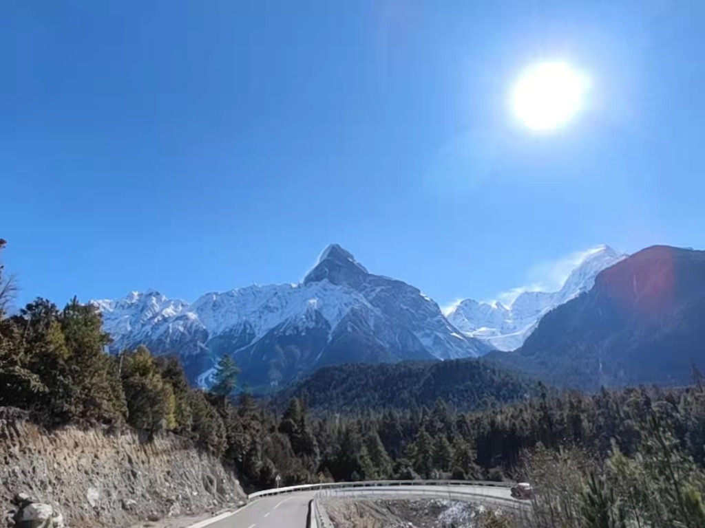 到了波密地界外面又是另一番风景,没有雪,郁郁葱葱的森林,暴晒的阳光,清晰的雪山顶, 不愧是西藏的小江南,完全是另外一番风景,彷佛到了夏天一样。