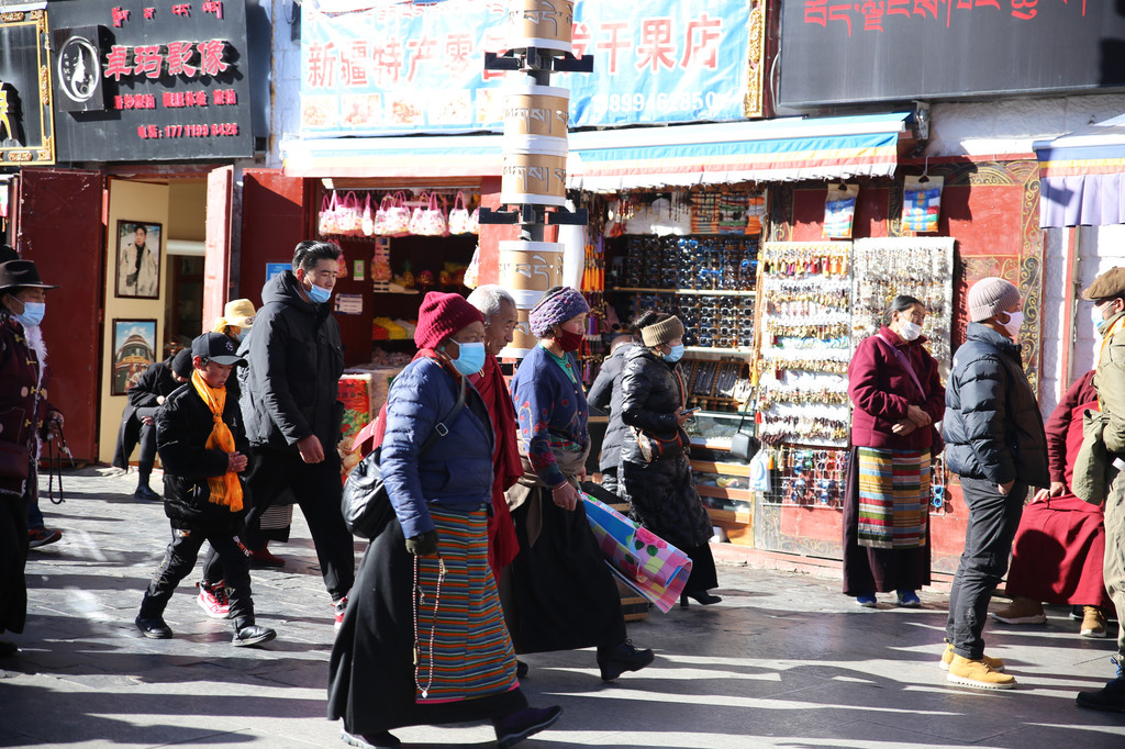 逛完布宫可以去北京中路逛一下,拉萨比较繁华的街道,节日的时候人比较多,很多藏民都会来到拉萨朝拜,疫情的关系,游客不是太多。