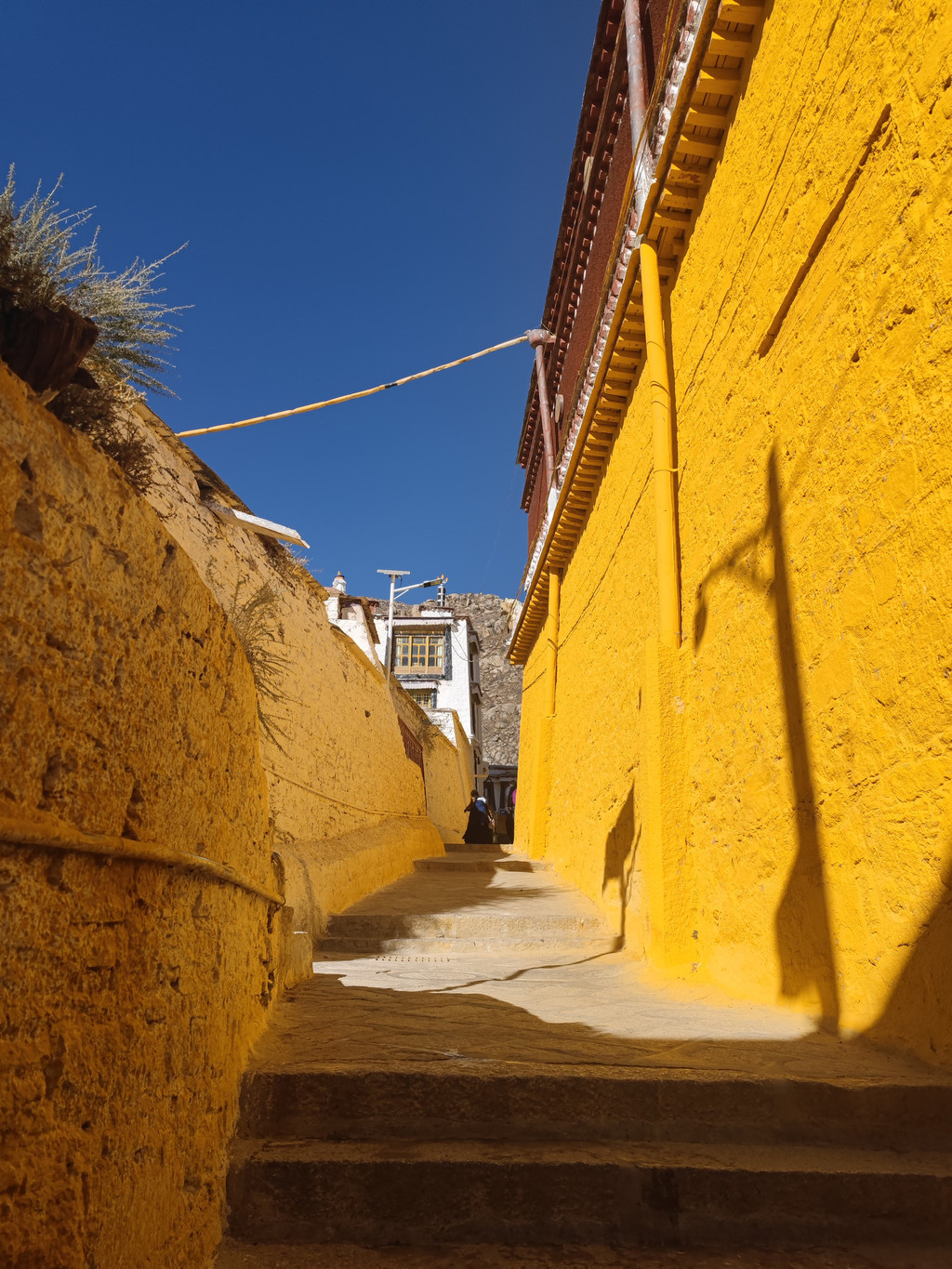 墙面的色彩非常鲜明,红的,黄的,白的,拍照还是很出片的,不过天冷加上高反,所以就只是便服随便拍拍。
