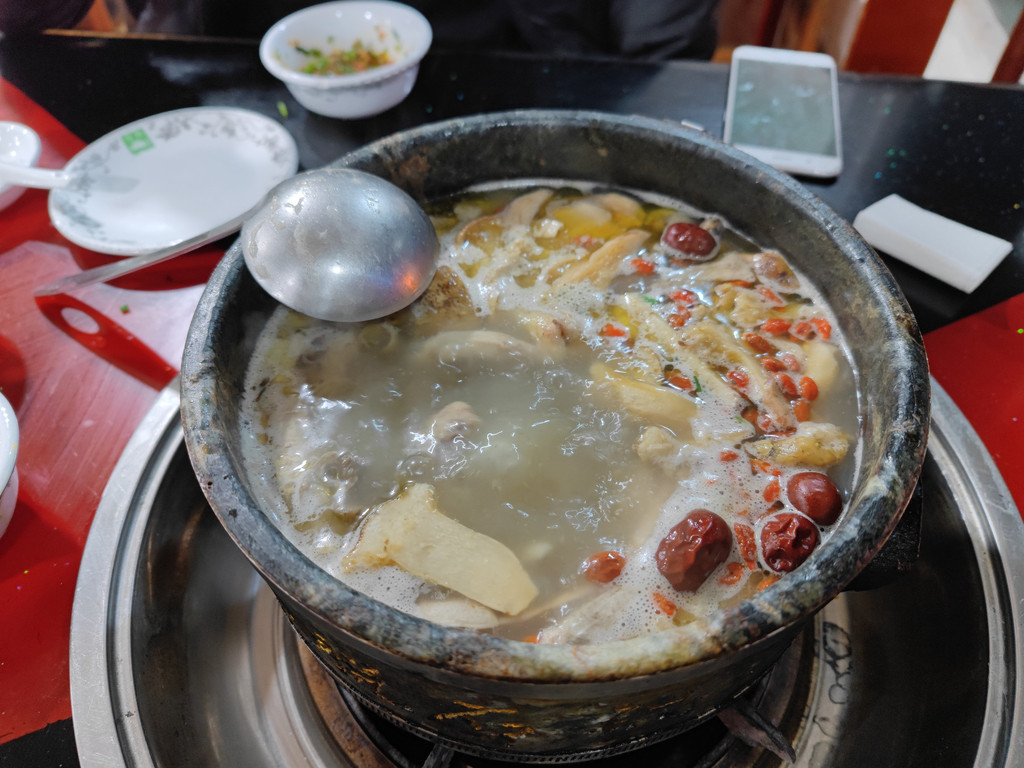 到了鲁朗必定是要吃一吃当地的石锅鸡,这个时间很多店家也是歇业回家了,找了一家还开门的,而且评价还挺好的店过去了,实施证明味道确实很好,真材实料,值得去。 吃完饭回去路上都已经全白了,吃的暖暖的回到民宿。