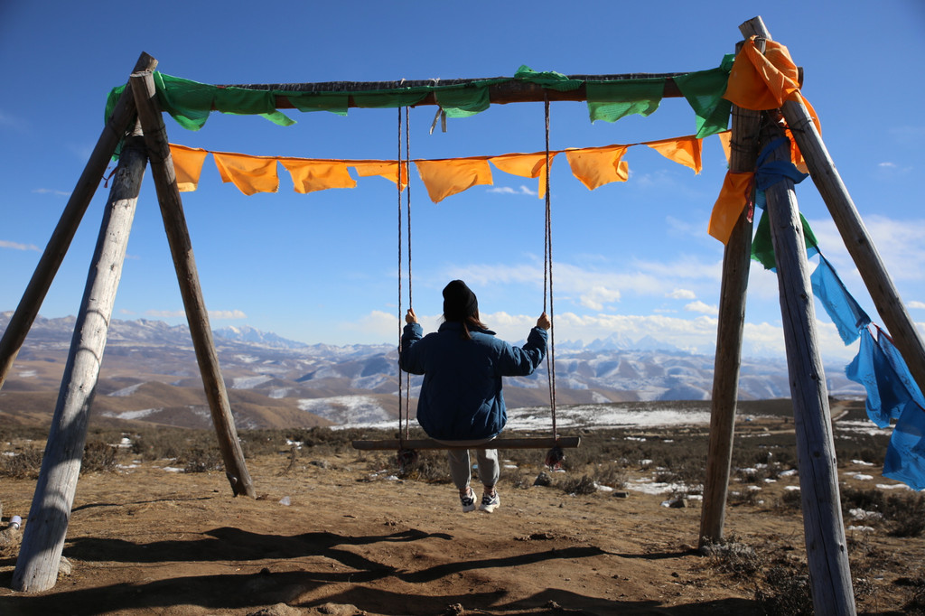 7号 (理塘-新都桥)又是山路的一天,风景看的已经不想举起手机了,路过天路18拐也不觉得有什么稀奇了,因为在新疆看了更壮观的拐,简单拍了拍照片就走了。中午到达新都桥,吃了个饭 找了个住的地方,慢慢收拾收拾,因为下午不着急出发,今天是去鱼子西,去山上看日落,看星星,新都桥开过去也就一小时,早去也是等着所以也就收拾下。 下午3店左右出发,到达那边4点左右,上山的路大多都是水泥路,因为山上有座寺庙,村民修了一条路。 到达寺庙之后就没有好路了,都是泥巴路,灰层很多。到达山顶时已经有几辆车了,我们选了个位置也停下来,等待日落。山顶可以看见远处的贡嘎雪山, 山上有两处秋千,拍不同的视角,人多的时候坐上去拍照要排队。