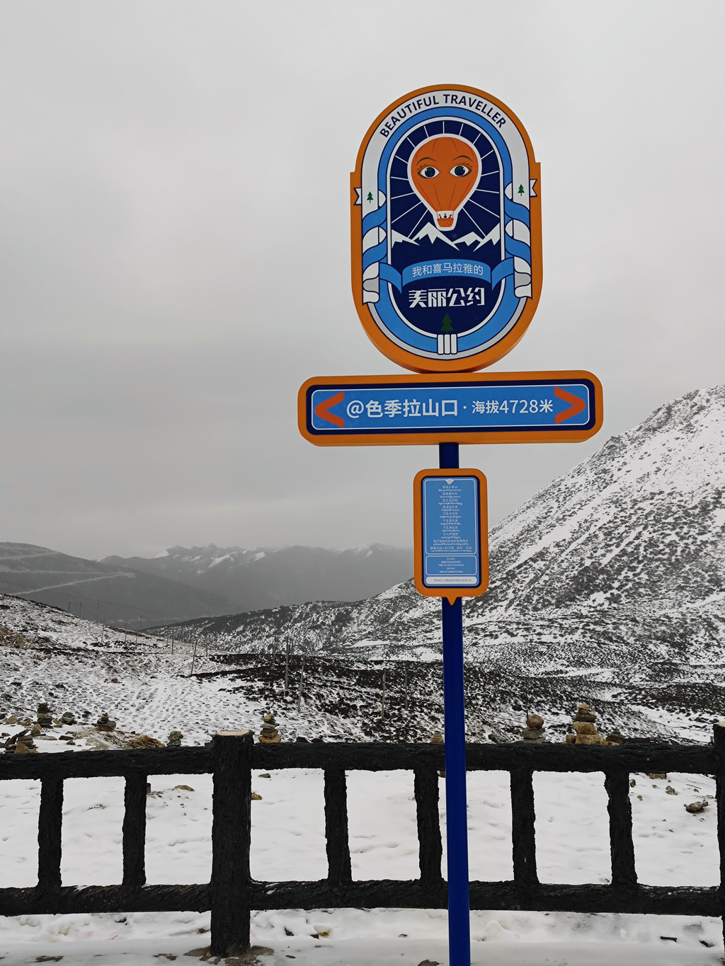 下午路过色季拉山口,看南迦巴瓦峰的地方,但到山上的时候在下雪,所以理所应当的没看见南迦巴瓦峰。。。