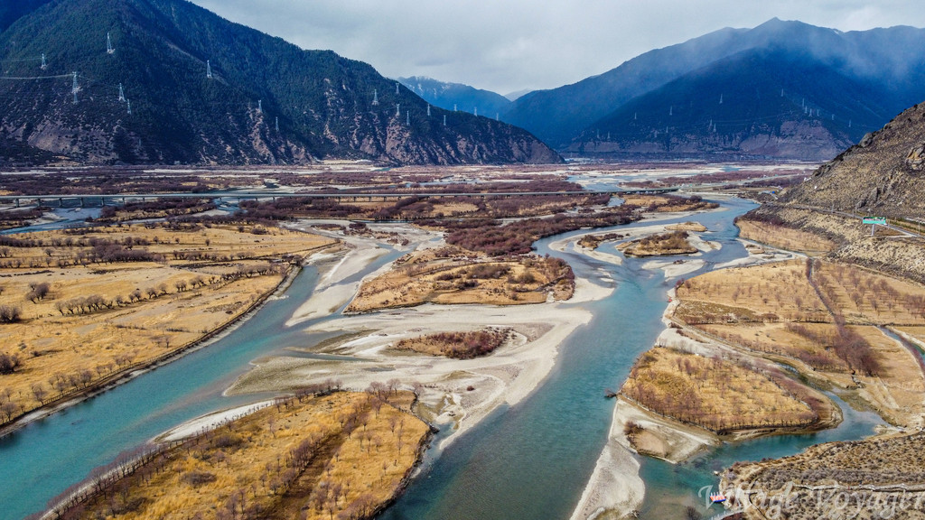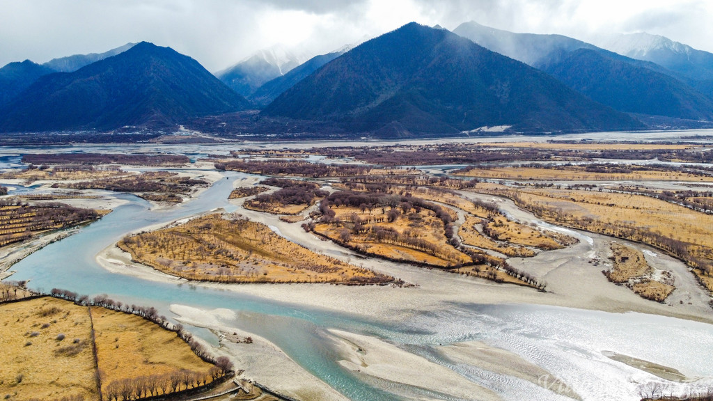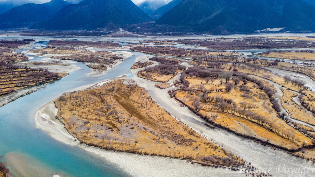 雅鲁藏布江与尼洋河在这一带交汇,形成广阔的三角洲湿地,这里雪山高耸,河流蜿蜒,形成旖旎的山水风光和史诗般壮阔的绝美画卷。