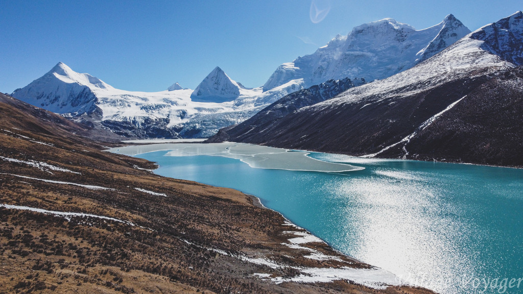 从三色湖继续往里开10多公里,在道路尽头就是祥格拉冰川,由于是未开发景点,人少免费,一不留神就成了你的私享景点。