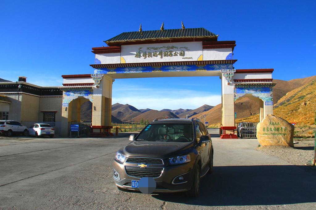 早上从定日县白坝镇出发,没走多远就到了检查站,需下车检验身份证和边防证等证件。继续往前走来到珠穆朗玛峰国家公园大门口,在这里购买公园门票。汽车一辆是400元(含一名司机),其他人每人90元,还要把驾驶员的身份证、驾驶证、汽车行驶证复印留存。在公园大门口有明显的标志,可以拍照留念。