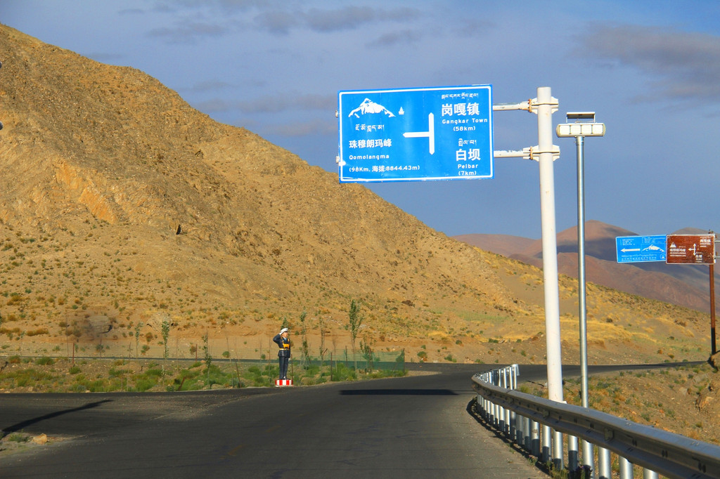 继续前行,驾驶着汽车行驶在海拔4000多米的盘山路上。要爬数不清的陡坡,经过数不清的急转弯,据称有108拐。非常庆幸的是从定日白坝到珠峰大本营110多公里的山路,前阶段已全部修好,其中部分弯弯曲曲的盘山路还是近期刚刚修好的。路虽不宽但很平整,急转弯处视线普遍较好,当日的车辆也不多,驾驶着汽车感觉良好。以前全是崎岖不平、坑坑洼洼的土路,还有搓板路,颠簸得不得了,“眼在天堂、身在地狱”,才百多公里的山路走一趟起码要5、6个小时,现在路好了不足3个小时就可以到达了。