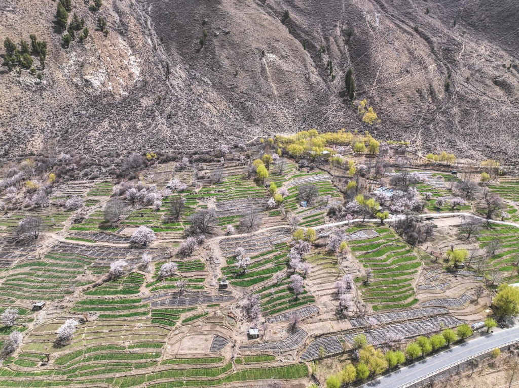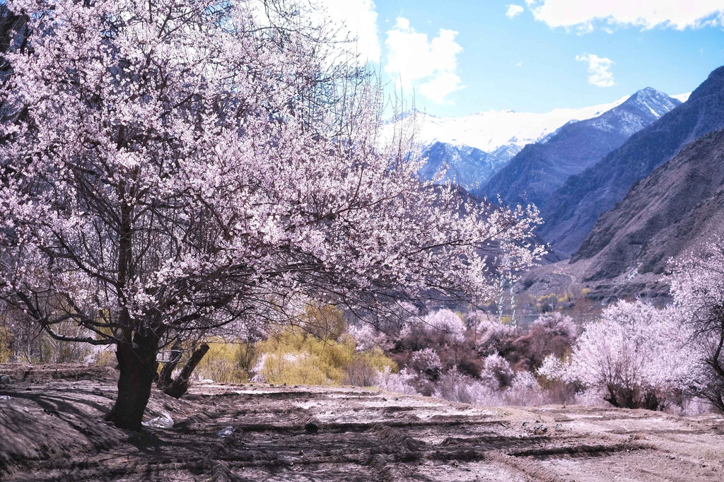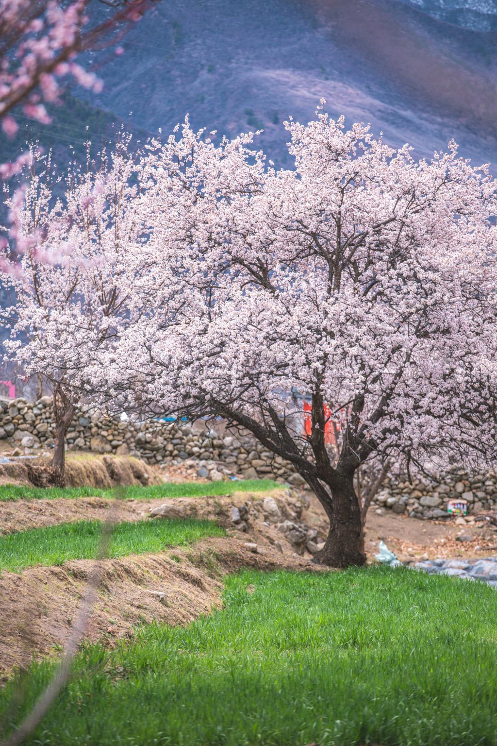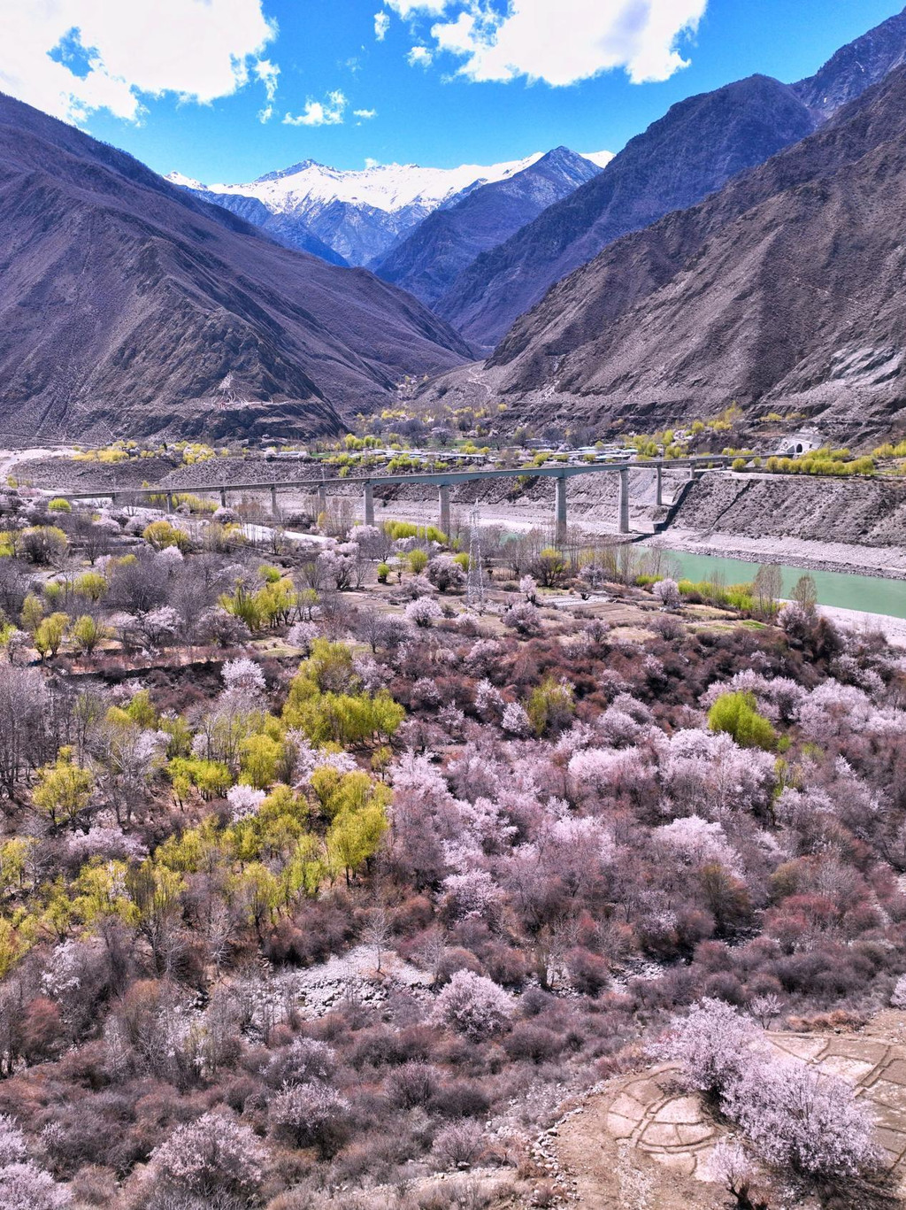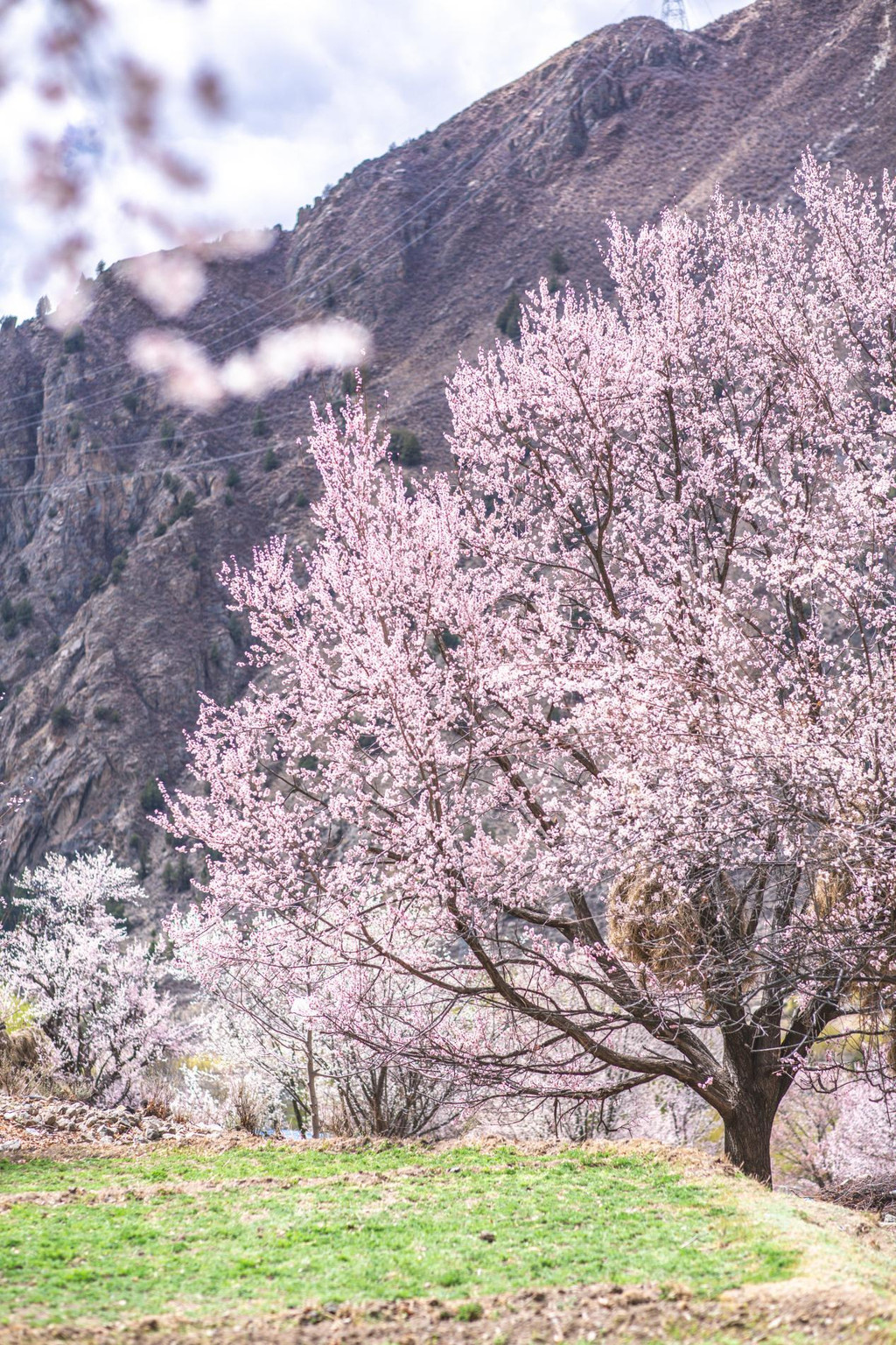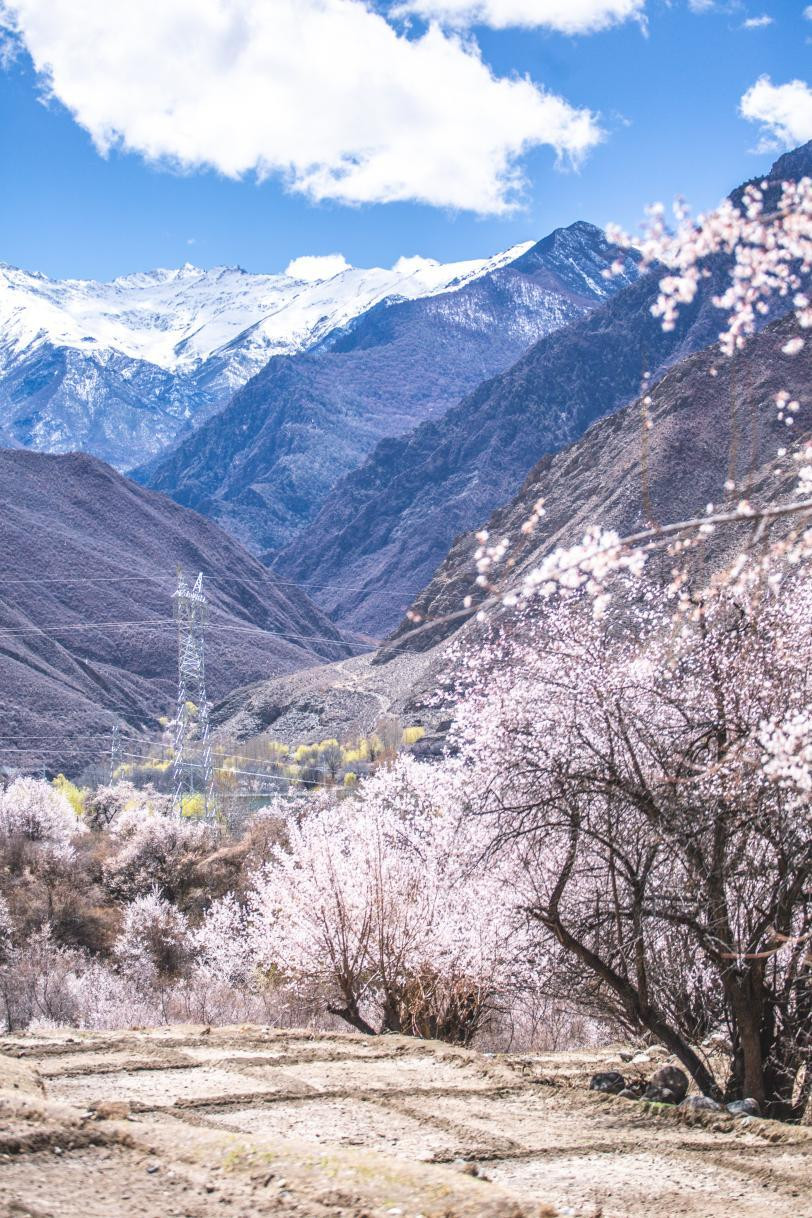 林芝的春天,桃花盛开在青稞田中,盛放在雅鲁藏布江旁。和我们常见的桃花不同,这里是高原桃花,树木高大,花开绚烂夺目。