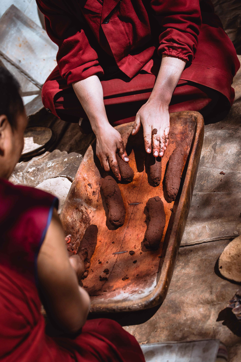 除了原料的精选和传统工具的应用,朋仁曲德寺藏香还有一个独特之处:它的香灰不易渐熨,点燃后会卷曲成圈状,有利于打扫和环保。这得益于朋仁曲德寺香师的精心制作和特殊配制的原料加工。